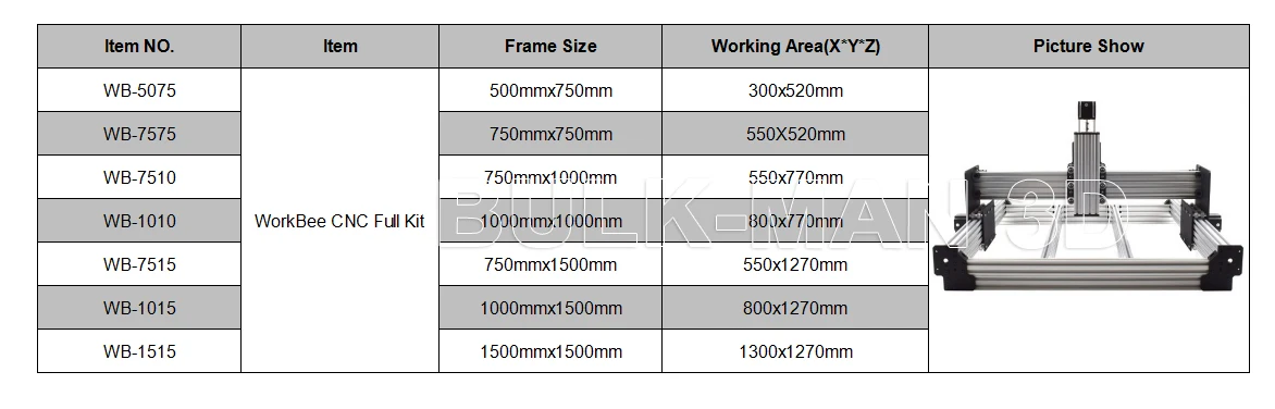 Станок с ЧПУ WorkBee-это машина с 4 осями (3 + 1), это означает, что есть 3 Физические оси (X,Y,Z) И подчиненной оси Y, которая называется осью a. Станок с ЧПУ WorkBee использует конкретные длины экструзии и свинцовых винтов.