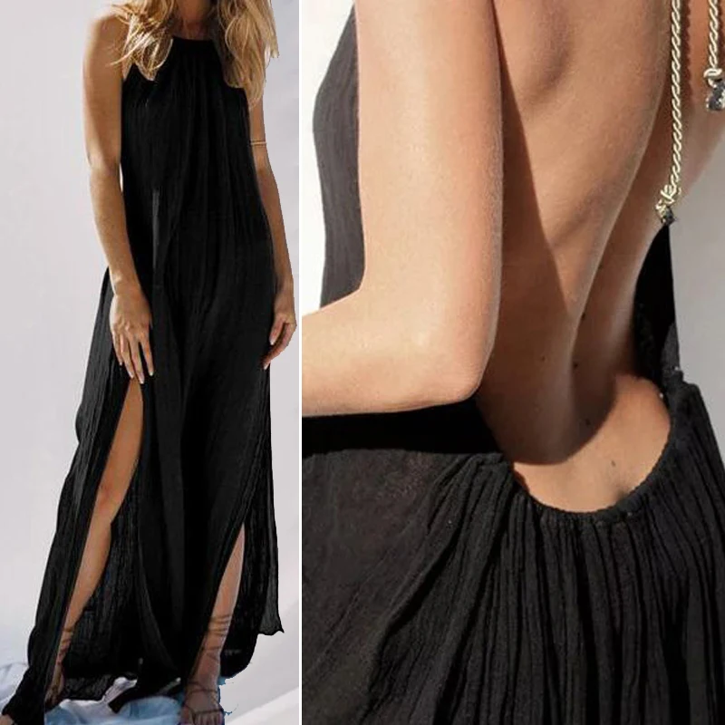 * Описание товара:Женская одежда, летняя модная сексуальная, без рукавов с открытой спиной, свободное платье с воротником хомут, пляжные Вечерние