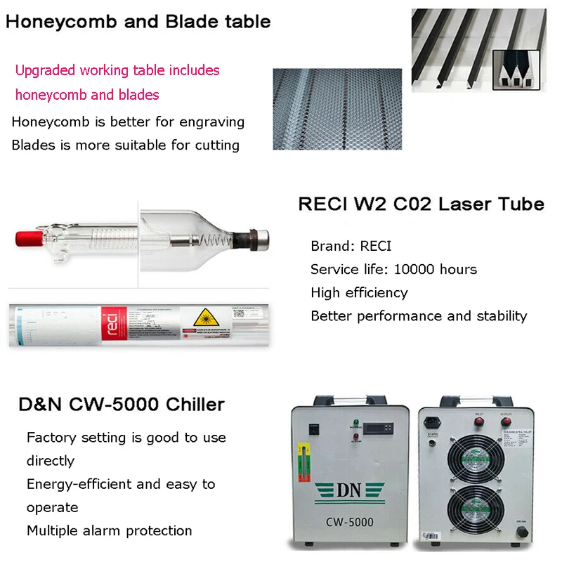 1. Более длительный срок службы, время работы лазерной трубки составляет 7200 часов