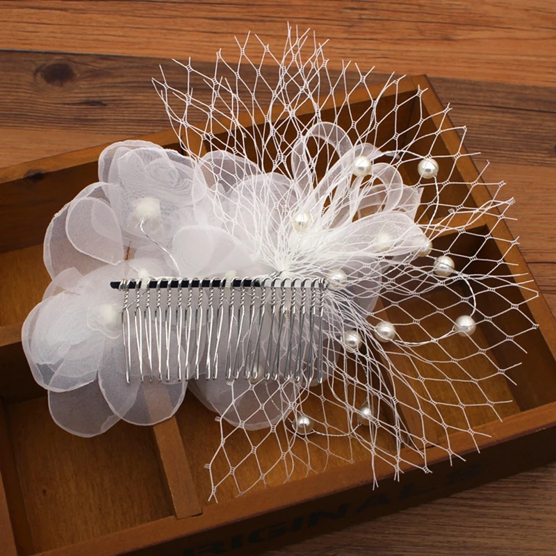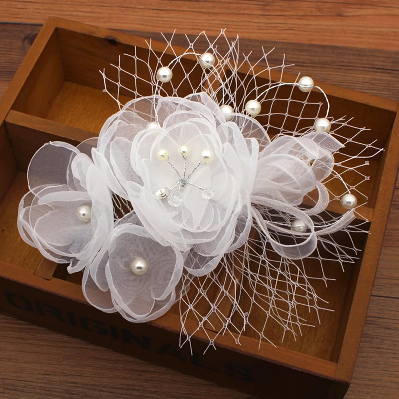 Материал: искусственный жемчуг, Шелковый Цветочный Тюль Цвет: белый