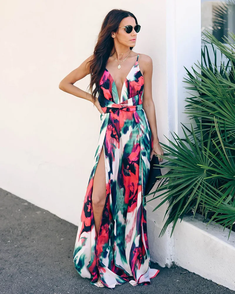 Элегантное длинное женское сексуальное кружевное платье на бретельках с v