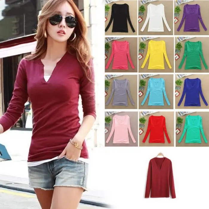 Clothes type:Autumn Winter Women Long Sleeve T-shirt V Neck Ladies Casual Shirts
