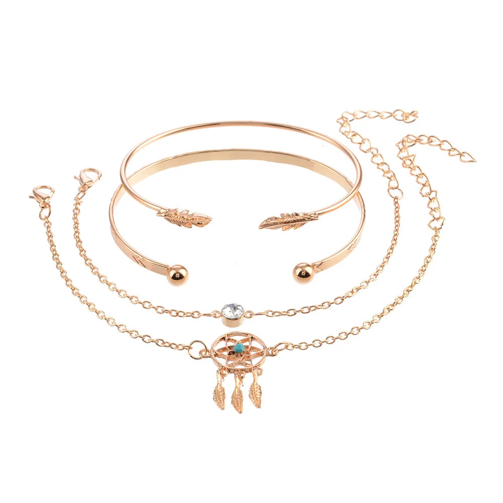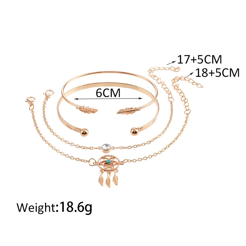 Мода 4 шт./компл. листья с геометрическим рисунком золотой браслет-цепочка комплект в богемном стиле, в винтажном стиле; Очаровательные открытые женские браслеты для запястья, Женские Ювелирные изделия