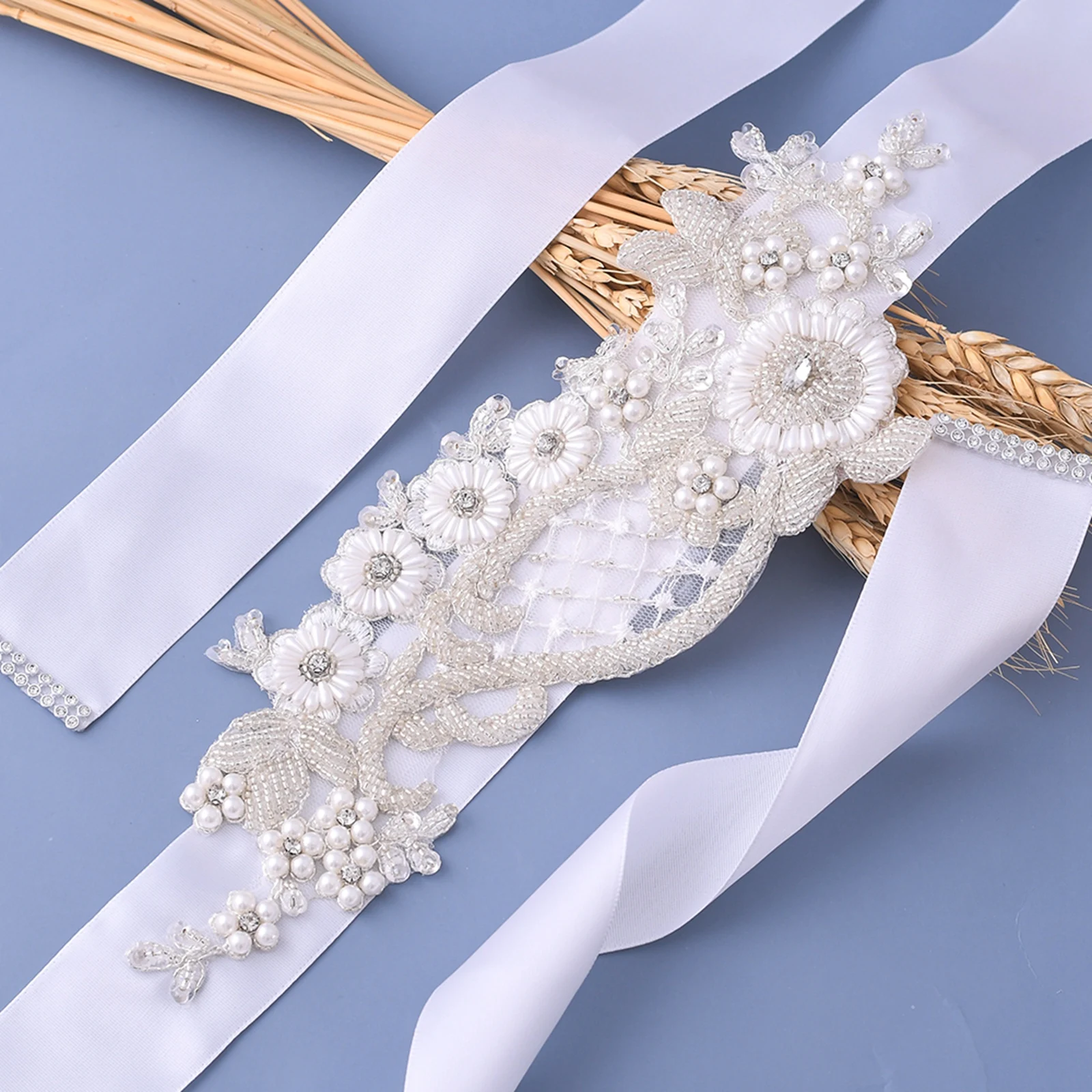 Свадебный пояс TRiXY S91, жемчужное свадебное платье, атласные стразы, свадебные пояса, Алмазные Пояса для свадебного платья, белый пояс
