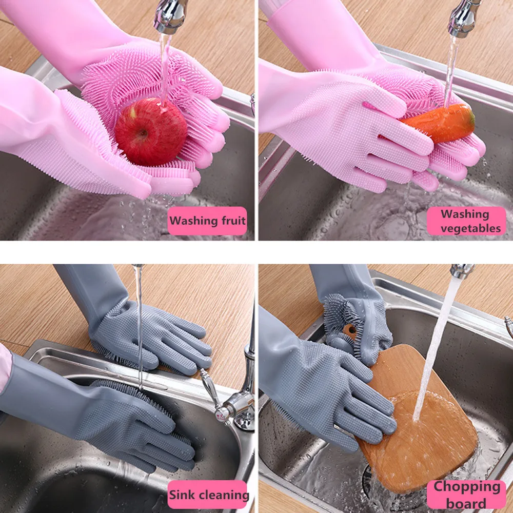 Волшебные перчатки для мытья посуды, силиконовые резиновые перчатки для чистки скруббера, 2 в 1 использования