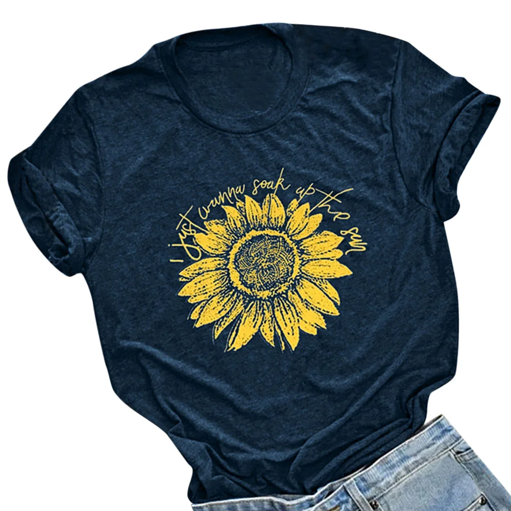 Милая футболка с рисунком подсолнуха, футболка с буквенным принтом, вдохновляющая рубашка, Женская Повседневная Праздничная рубашка, Пляжная футболка.