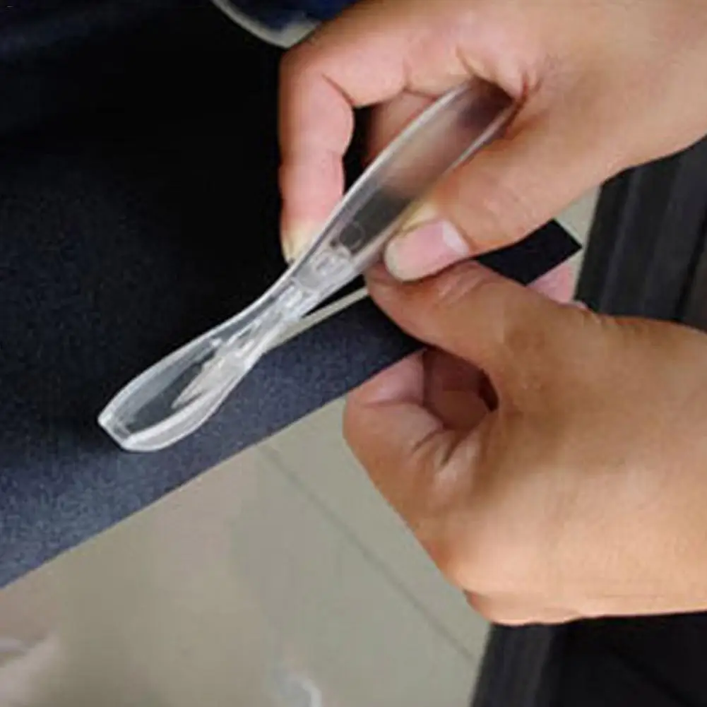 Прозрачный пластиковый ручной резак для стретч-пленки-это Карманный пластиковый резак с режущей головкой, который направляет материал в лезвие под углом, чтобы помочь нарезать растягивающуюся пленку, не прилипая и не закрывая.