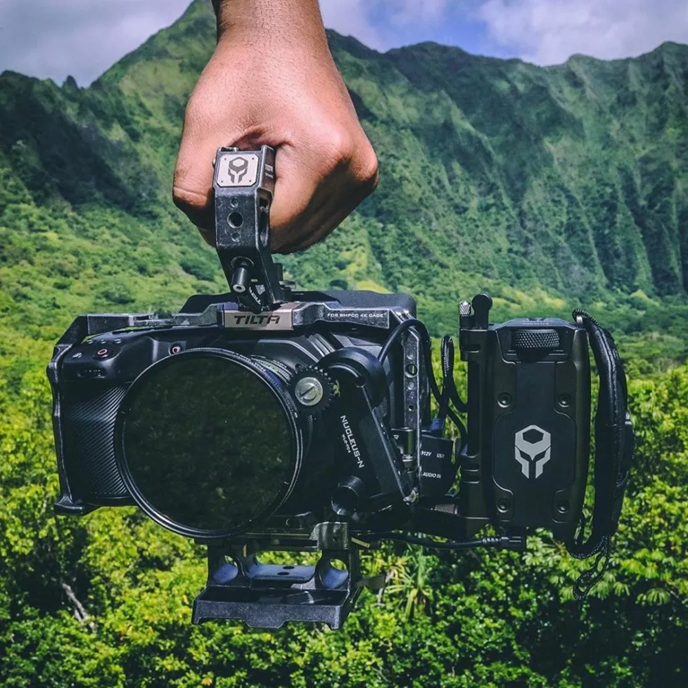 Эта Боковая ручка скользит на основание половинной и полной клетки камеры BMPCC 4K. Порт аккумулятора в нижней части ручки позволяет использовать батарею Sony F970 для питания Nano мотора ядра через выход питания Micro-USB 8V. Выход постоянного тока 12 В также интегрирован в ручку.