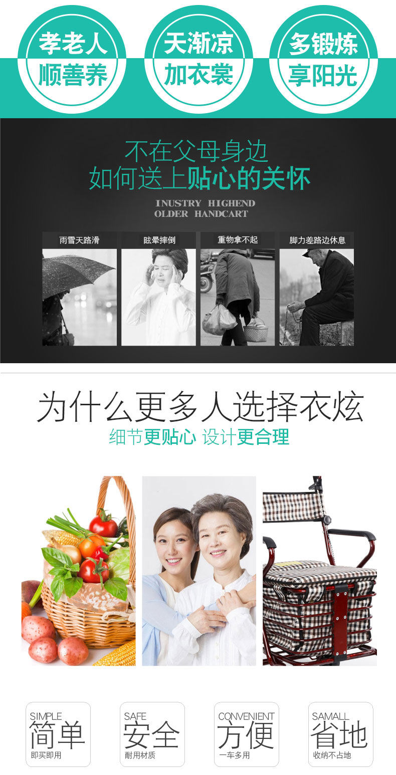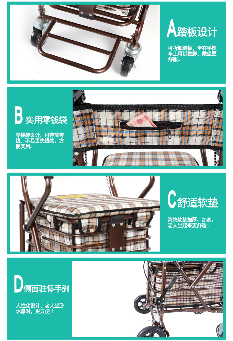 Старый может сидеть и нажимать четыре круга, чтобы купить еду маленькая корзина сиденье складной шаговый корзина