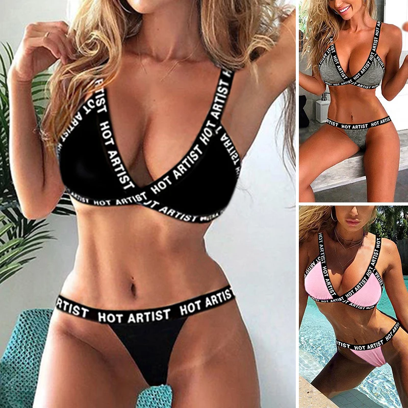 * Описание товара: 2 шт./компл.,Женская одежда для девочек, модные летние пляжные, сексуальные бикини, купальники, бюстгальтер + T-back/трусы, без стального кольца, белье без вкладышей