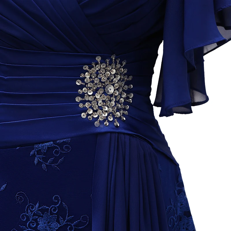 Шифоновое вечернее платье с v-образным вырезом и оборками; вечерние платья с короткими рукавами с пышными рукавами; платье в форме листа лотоса; большие размеры; платья для матери и невесты