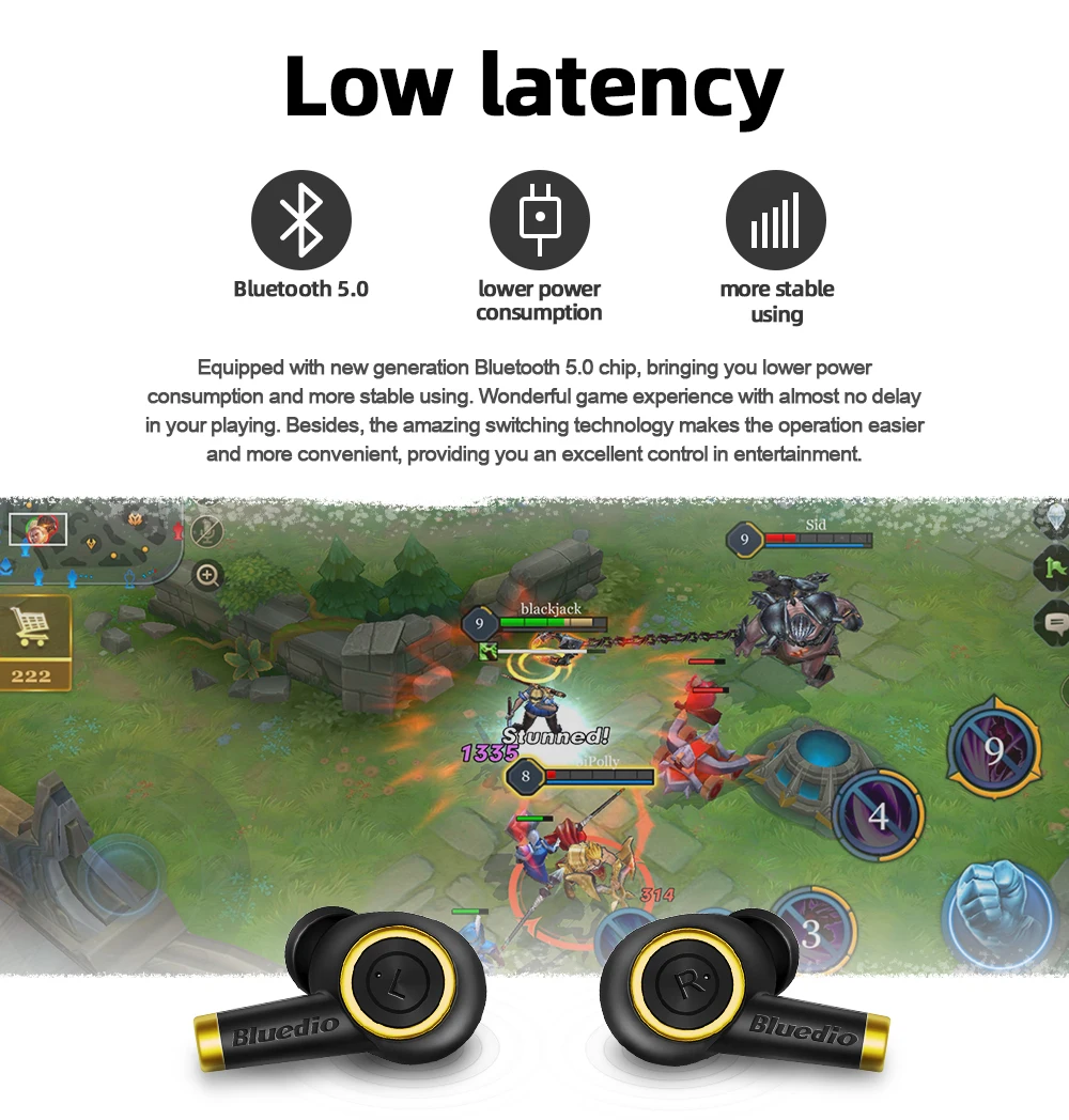 ● Новое поколение чипов Bluetooth 5,0, что обеспечивает более низкое энергопотребление и более стабильное использование. Прекрасный игровой опыт практически без задержек.