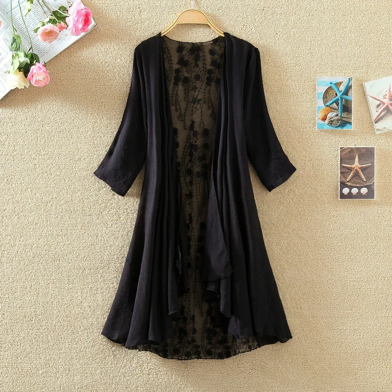 Новинка 2020, женская летняя блузка из хлопка и льна, Повседневный Кардиган-кимоно с дырочками, Солнцезащитный Топ, Blusas Mujer De Moda