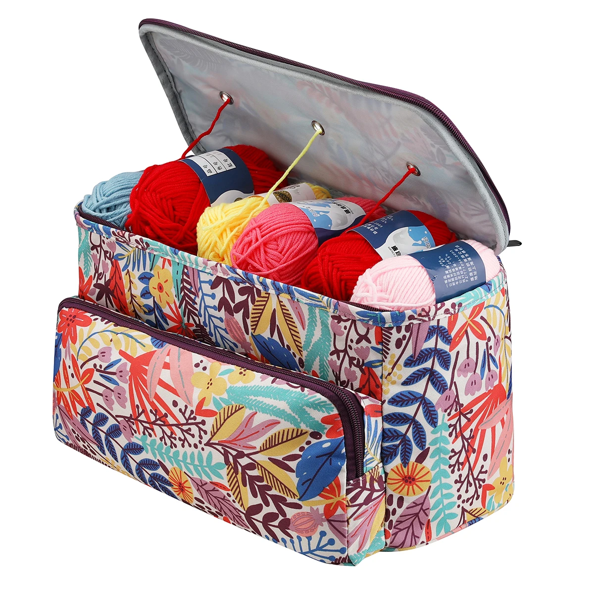 Наш органайзер для пряжи Вмещает: Шерстяная пряжа Пряжа проекты Вязальные крючки Вязание иглы Трикотажная пряжа и узоры вязания крючком Прочие аксессуары для вязания крючком и вязания Иглы, крючки, ножницы, телефон, узоры и т. д. инструменты легко найти и хранить, и у вас будет все под рукой! Посылка включает в себя: 1 х сумка для хранения пряжи Сумка для хранения пряжи Размеры около 36 см * 15,5 см * 18,5 см Примечание: в комплект не входит шерсть и крючок, в комплект входит только пустая сумка для хранения