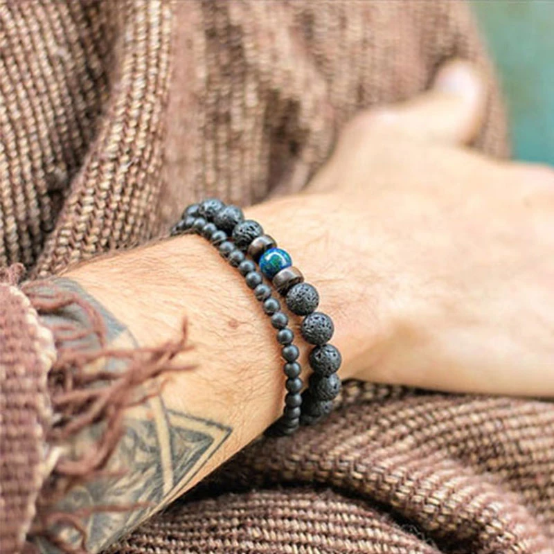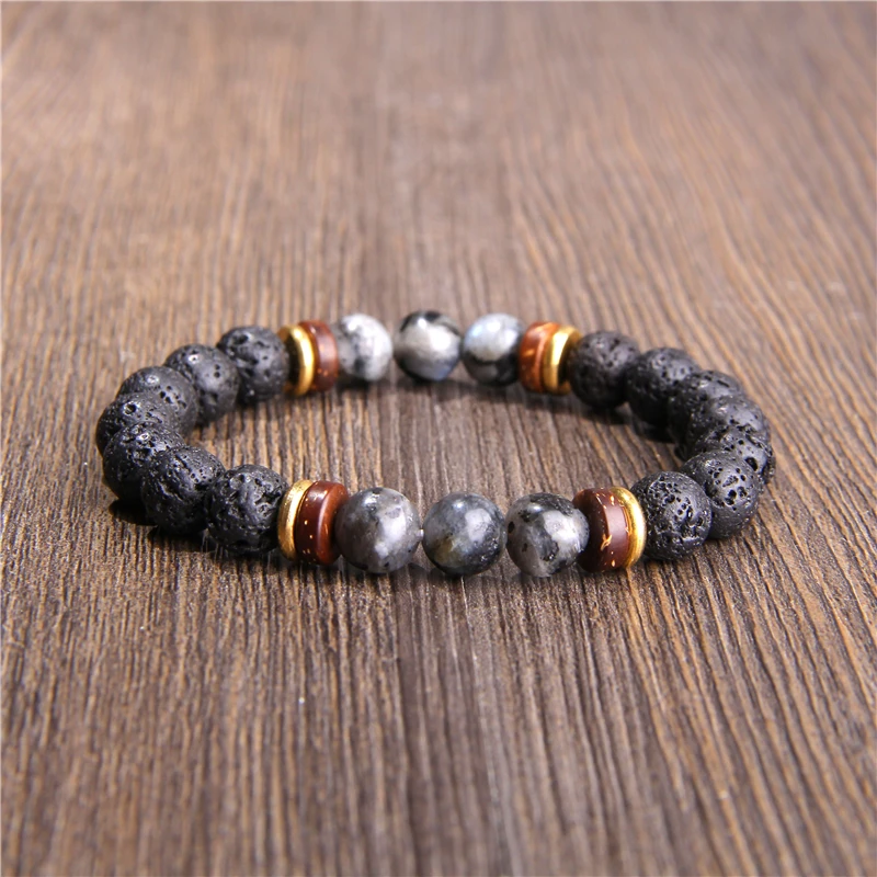 Мужской браслет из натуральной чакры, камень из вулканической лавы, браслет из деревянных бусин, очаровательный браслет для женщин и мужчин, ювелирные изделия, подарки