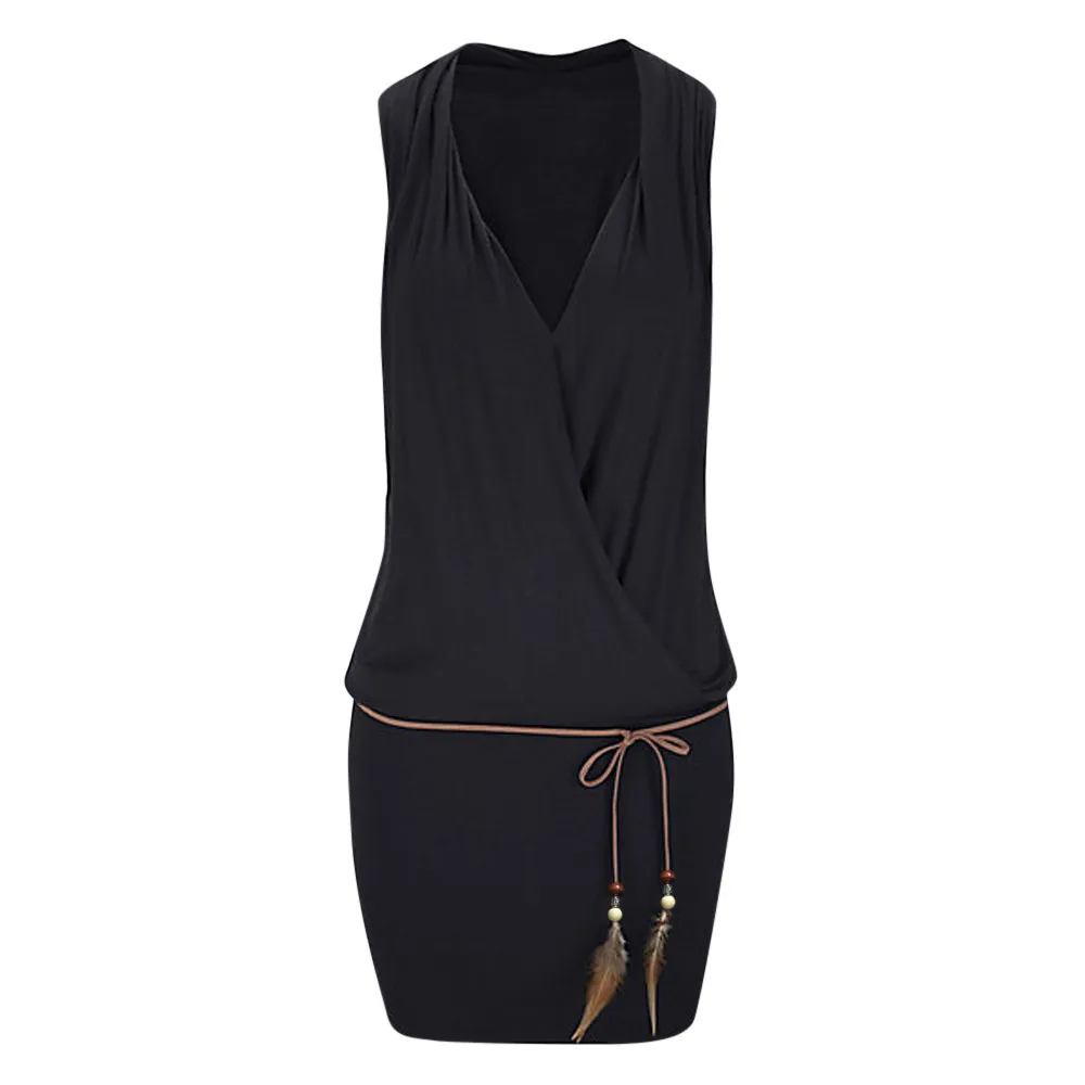 Женское платье без рукавов JAYCOSIN, повседневное пляжное мини-платье в стиле ретро, летнее пляжное платье с v-образным вырезом