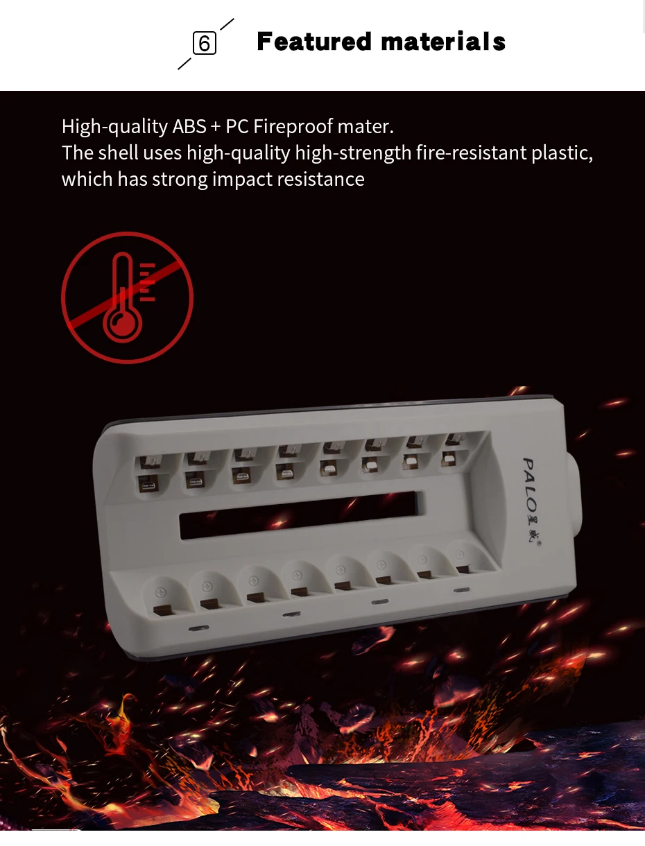 1. Это зарядное устройство можно заряжать портативным зарядным устройством 2/4/6/8 шт 1,2 V AA, AAA, никель-металл-гидридный аккумулятор с никель-кадмиевый аккумулятор перезаряжаемый аккумулятор; 2. Умный чип контролирует процесс зарядки, светодиодный светильник показывает процесс зарядки. Красный светильник при зарядке, зеленый светильник при зарядке пустой или аккумулятор полной зарядки; 3. Независимый двухслотовый зарядный канал, множественная защита, поддержка быстрой зарядки; 4. В конце процесса зарядки Встроенный микрокомпьютер преобразует режим зарядки от быстрой зарядки до зарядки микро-тока, обеспечивает полную зарядку аккумулятора и предотвращает чрезмерную зарядку; 5. 100-240 В, мировое напряжение, подходит для всего мира; 6. Постоянный ток предотвращает колебания тока, обеспечивает безопасность зарядки; 7. Зарядное устройство строго контролирует максимальное время зарядки, гарантирует одновременную зарядку аккумулятора. Параметры: Партномер: 8 слотов 1,2 в AA AAA Батарея Зарядное устройство Вход: 100-240 В переменного тока, 50/60 Гц Выход: AA-350mA * 8, AAA-200mA * 8 Потребление энергии без нагрузки: 1 Вт макс. Максимальная потребляемая мощность при полной нагрузке: 5 Вт Скорость заряда батареи: >80% Размер: 180 мм x 77 мм x 28 мм Материал s: абс + Поликарбонат огнеупорный материал Бренд: PALO Сертификация: CE, RoHs Несущественным образом отличаться: 1. Использование окружающей среды: от 0 до 40 ℃, это нормальное явление, что батарея теплее, чем температура окружающей среды при зарядке. 2. Убедитесь, что установленная батарея Верна: Установите +/-полюс аккумулятора в соответствии с +/-полюсом зарядного устройства. 3. Не разбирайте и не собирайте зарядное устройство самостоятельно по соображениям безопасности.