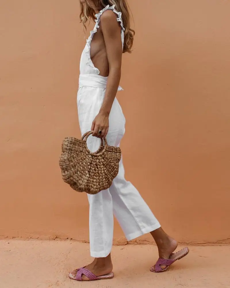 YOK 2018 Новый комбинезон леди пикантные Обёрточная бумага штаны с принтом без
