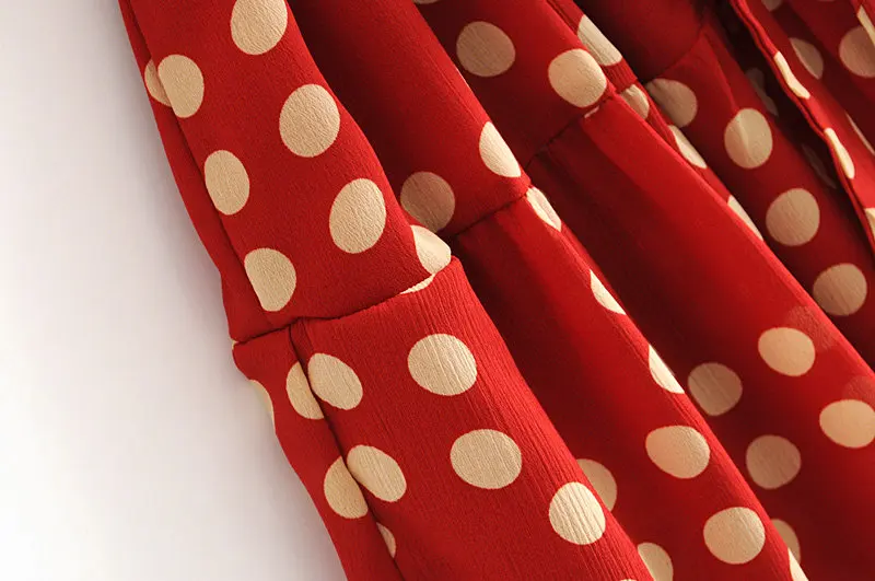 Женское длинное платье в горошек, винтажное плиссированное платье в горошек с длинными рукавами и бантом на воротнике, весна-осень 2019