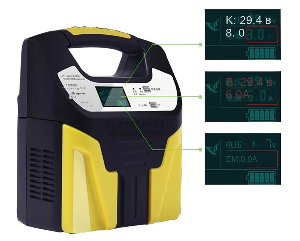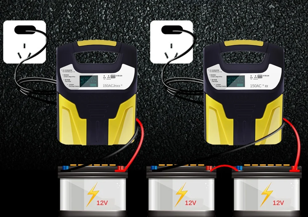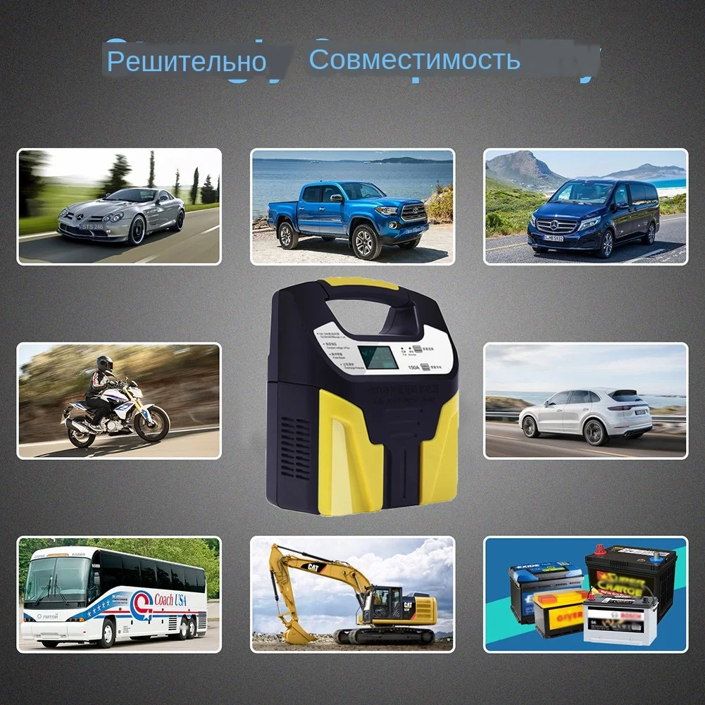 150A свинцово-кислотные Зарядные устройства 12 в 24 В умная Быстрая зарядка полностью автоматическая батарея для мотоцикла грузовика автомобиля зарядное устройство ЖК-дисплей