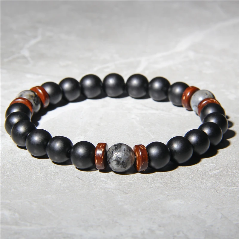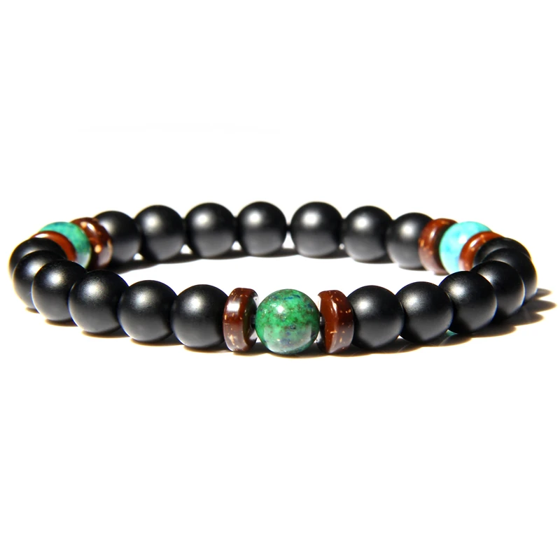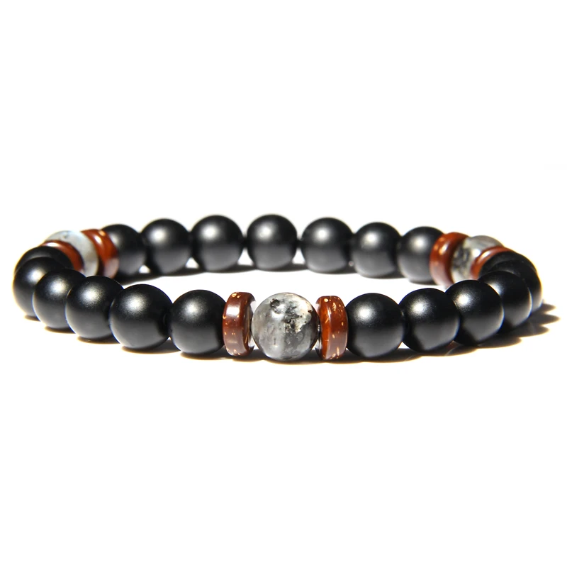 8 мм Новый натуральный черный камень оникс с деревянными бусинами, очаровательный браслет, модный буддийский молитвенный Будда, браслет, ювелирные изделия для женщин и мужчин