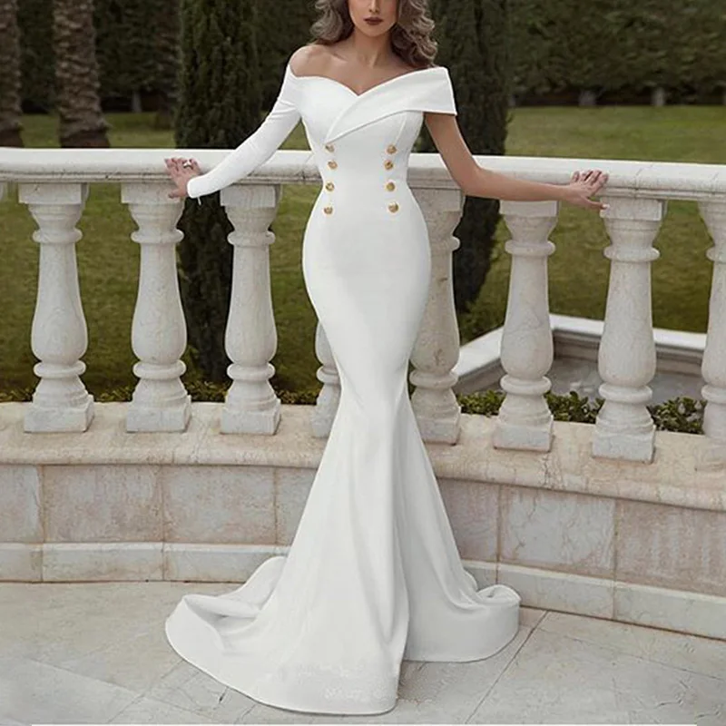 * Описание товара:Женская одежда, сексуальное тонкое, свадебное вечернее платье подружки невесты, вырез лодочкой, с открытыми плечами, элегантное банкетное платье «рыбий хвост»