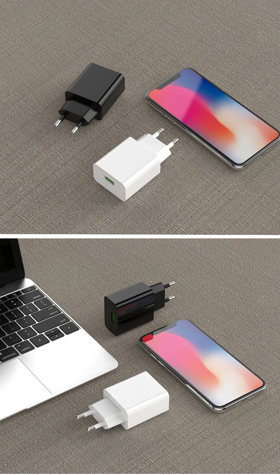 Преимущество: 1) умные usb-порты быстро и легко идентифицируют ваши мобильные устройства, чтобы обеспечить оптимальную эффективность зарядки. 2) функция защиты: защита от короткого замыкания, защита от перегрузки по току и перенапряжения, защита от перегрузки 3) быстрое зарядное устройство QC3.0: обеспечивает максимальную эффективность зарядки до 80% за 50 минут, 3x быстрее, чем обычное зарядное устройство.