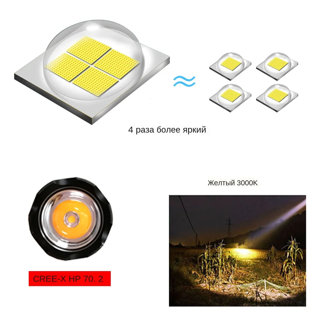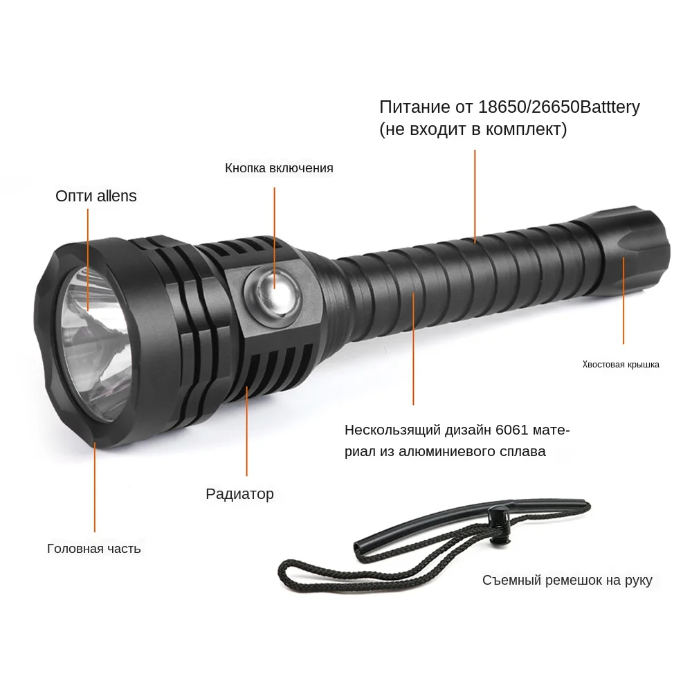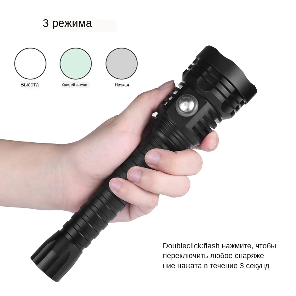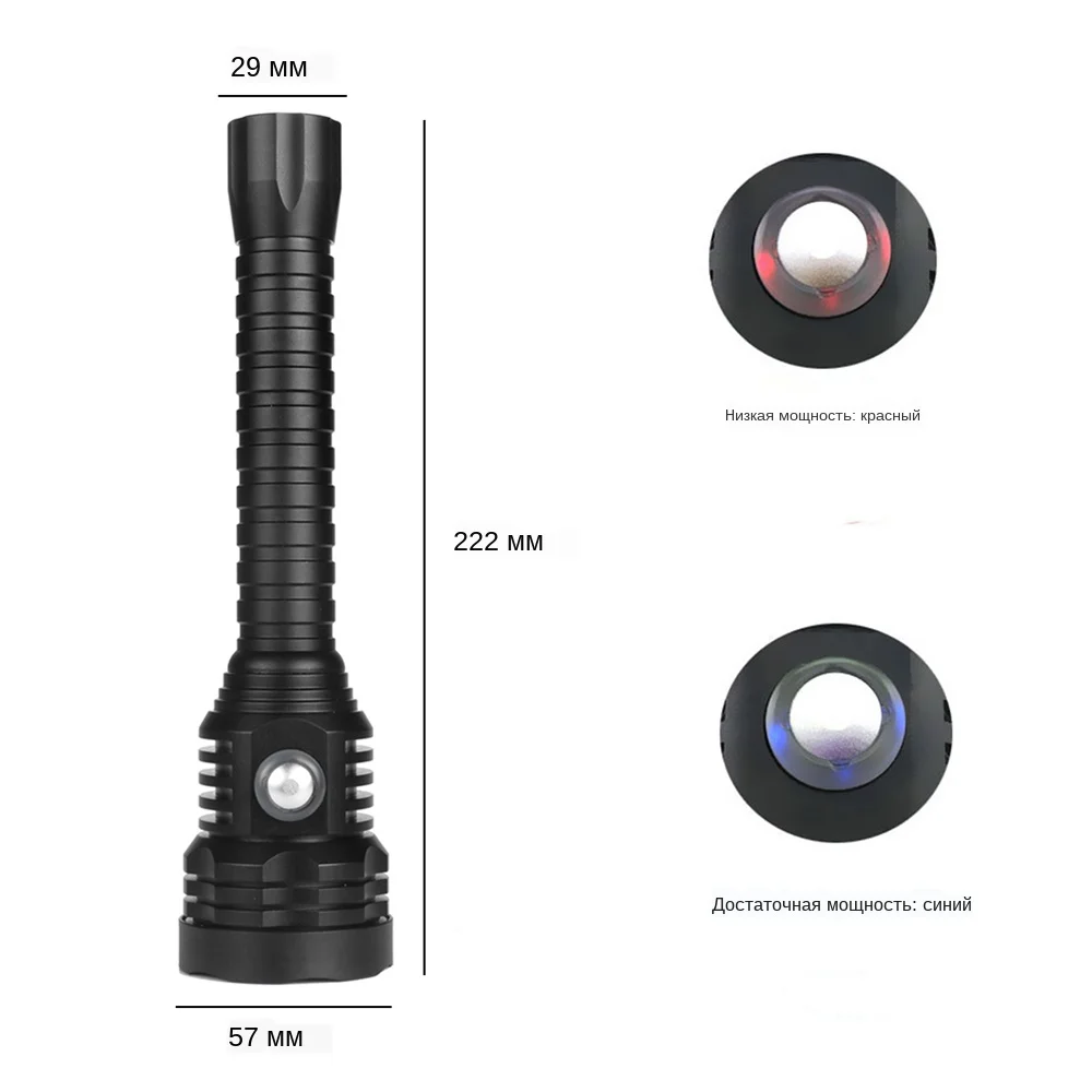 Характеристики: Название: фонарик для дайвинга A27 Лампа: CREE-XH P70.2 LED (второе поколение PXHP70 лампочек, лучший фокусирующий эффект) Цвет света: белый свет 5500 K/желтый свет 3000 K Срок службы светодиодов: более 100,000 часов Расстояние луча: около 490 метров Угол луча: около 56 градусов Оригинальные чипы XHP70.2, максимальная мощность 4000 люмен Переключатель: Нажмите, чтобы открыть/удерживайте, чтобы закрыть. 4 режима: высокая-средняя-низкая-вспышка (дважды нажмите, чтобы войти в мигание) Кнопочный переключатель со светодиодным дисплеем: (зеленый для полной емкости и красный для отсутствия емкости) Водонепроницаемость: 100 м подводный водонепроницаемый, прочный, смазанный двойной уплотнительное кольцо уплотнения для двойной безопасности, чтобы работать под водой Отражатель: алюминиевый отражатель Батарея: Питание от 2x18650 3,6 В/3,7 В батареи (без аккумулятора) Напряжение: 7,4-8,4 В Размеры: Длина: 22,1 см, диаметр головки: 5,6 см, диаметр вала: 3,0 см Вес нетто: 300 г (батарея в комплект не входит) Использование: Идеально подходит для дайвинга, кемпинга, пеших прогулок, альпинизма, охоты, рыбалки... Инструкция по эксплуатации: Боковой переключатель для управления всеми функциями: ● Нажмите, чтобы открыть фонарик, высокая-средняя-низкая-вспышка (дважды нажмите, чтобы войти в режим вспышки) ● Нажмите и удерживайте переключатель в течение 3 секунд, чтобы выключить фонарик Источник питания: ● Фонарик A27: Рабочее напряжение 6,8-12,8 в, поддержка аккумулятора 18650 2*3,7 В. Обратите внимание, что ваш аккумулятор повлияет на яркость фонарика. Рекомендуется батарея питания. Поддерживает 2*3,7 В 18650 батареи, 4000 люменов XHP70.2 СИД с высокой яркостью и его радиус облучения составляет около 400-600 метров Что вы получаете? Упаковка А 1 * дайвинг Flashligh (без батареи) 1 * браслет Упаковка в 1 * фонарик для дайвинга 2*18650 батареи 1 * браслет Упаковка C 1 * фонарик для дайвинга 2*18650 батареи 1 * зарядное устройство 1 * браслет
