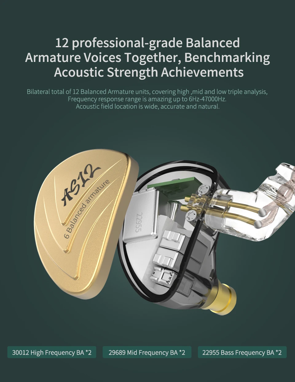 Спецификация: 1.Название продукта:ОригиналKZ AS12Наушники в ухо 2.Бренд:KZ 3.Модель: AS12 4.Тип наушников: В ухо 5.Сопротивление: 16Ω 6.Чувствительность наушников: 103ДБ/мВт 7.Частотный диапазон: 6-47000 Гц 8. Интерфейс: 3,5 мм позолоченный 9.Тип вилки: L изогнутый 10.Кабель Длина: 1,2 м ± 3 см 11.Цвет: золотой, серебряный 12.Есть ли кабель: Да 13.Интерфейс наушников:2-контактный интерфейс 14.С микрофоном: Опционально 15. Можно ли заменить кабель: Да 16.Блок драйвера:6BAГибридный блок драйвера для каждой стороны