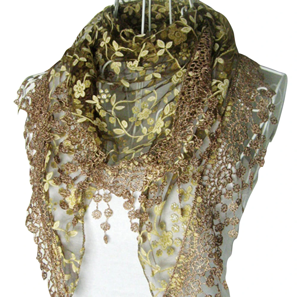 Женская мода Полые кисточкой кружева роза цветочный шарф Треугольная Шаль Обертывание подарок