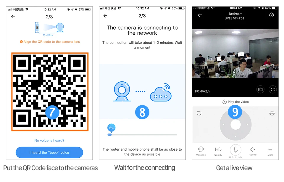 Эта смарт-камера поддерживает только 2,4G WiFi conneciton, и вы можете наслаждаться свободой, чтобы разместить его в любом месте вашего дома, просто inatall APP YCC365 Plus, отсканируйте qr-код камеры, чтобы добавить его, подключите его к сети Wi-Fi, и вы можете начать мониторинг.