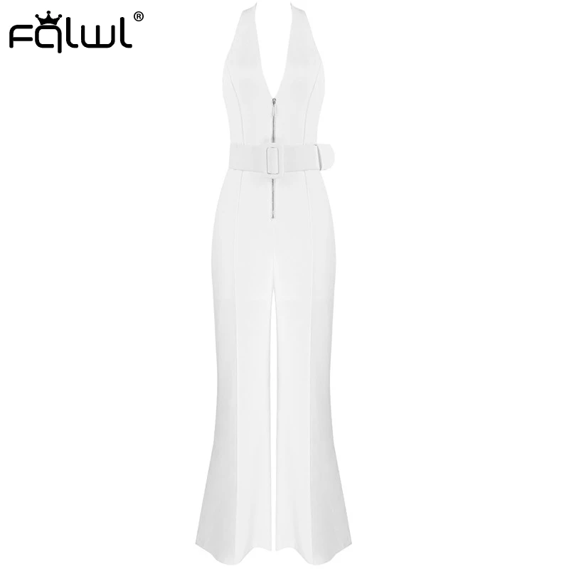 Женский комбинезон с открытой спиной FQLWL, белый Облегающий комбинезон с широкими штанинами и поясом на лето