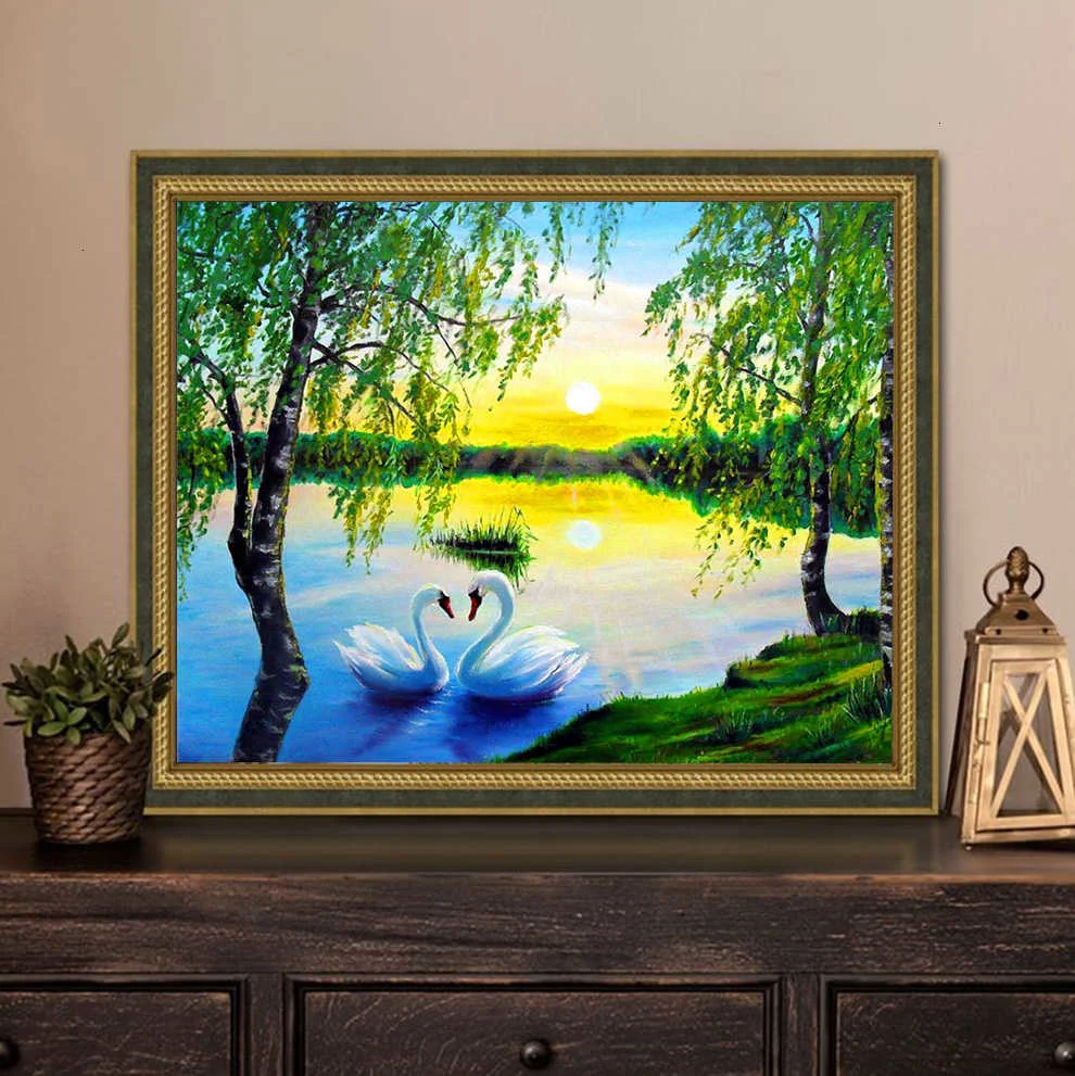 Name:AZQSD Diamond Painting Scenery Cross Stitch Rhinestones Diamond Mosaic Swan Diamond Embroidery Full Set Wall Decor Handmade Gift