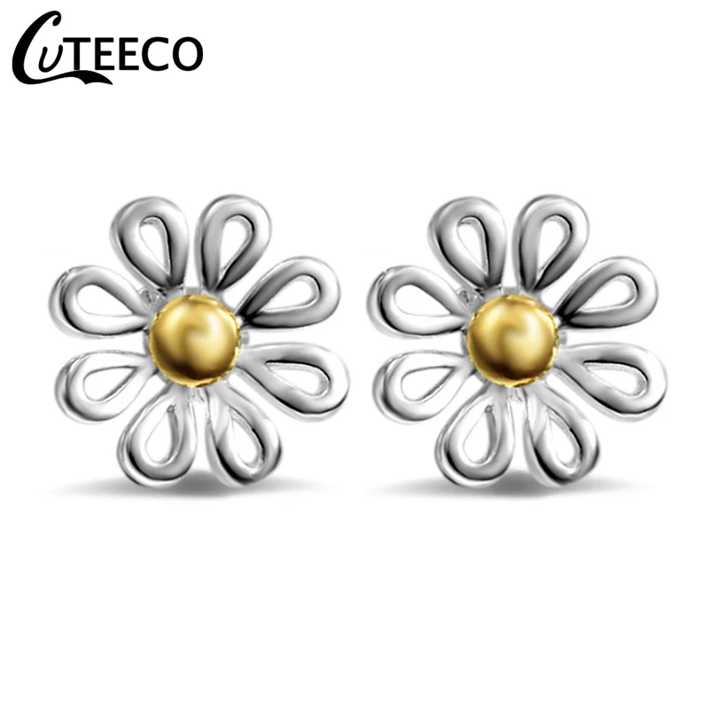 CUTEECO Лидер продаж, серьги-гвоздики с ромашками, цветами радуги, сердцем, цирконием для женщин, оригинальные брендовые серьги, ювелирные изделия, Brinco