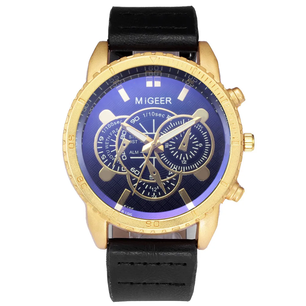 Высококачественные Новые Женевские Мужские кварцевые аналоговые часы с кожаным ремешком из нержавеющей стали