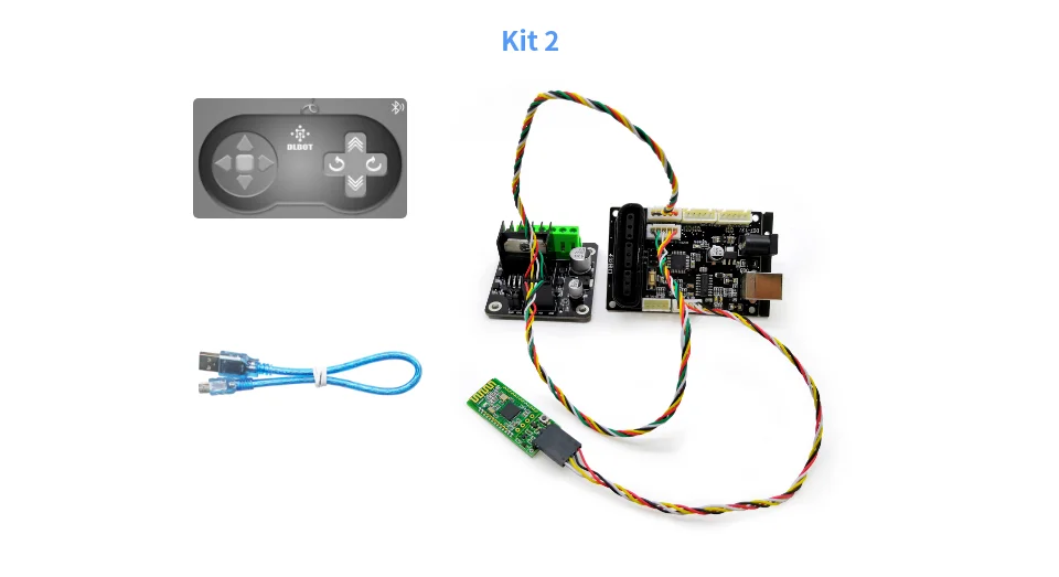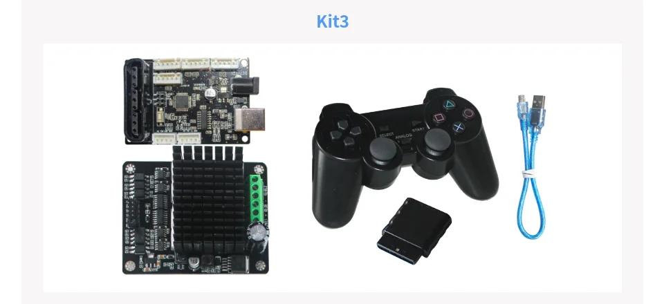 Комплект управления 1 и комплект 2 (стандартный комплект управления) и комплект 3 и комплект 4 (комплект управления обновлением), любой из комплектов может управлять баком/автомобилем с 2/4 канальным двигателем постоянного тока, в то время как для комплекта 5 и комплекта 6, который предназначен для шасси omni и Mecanum.