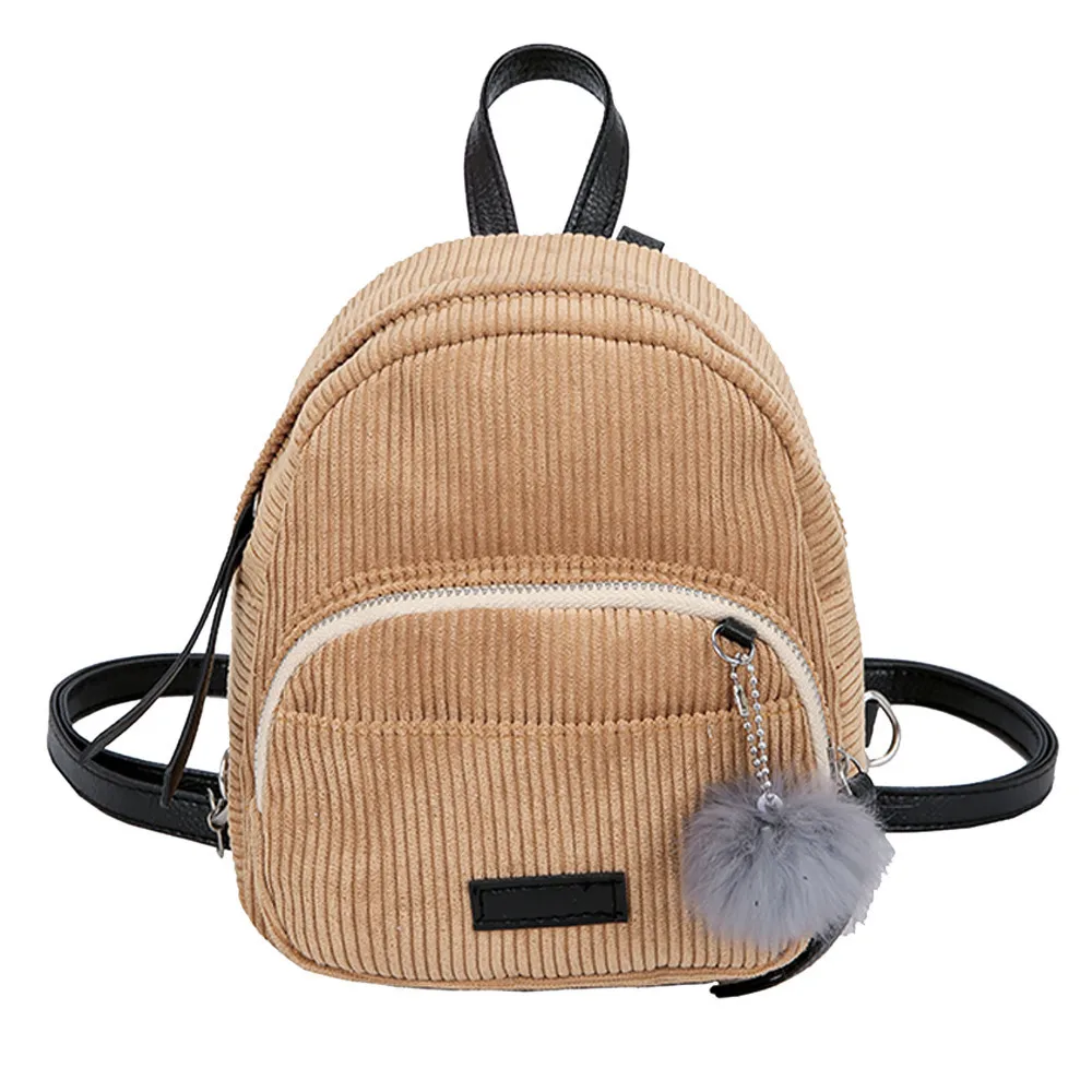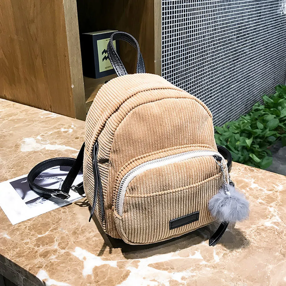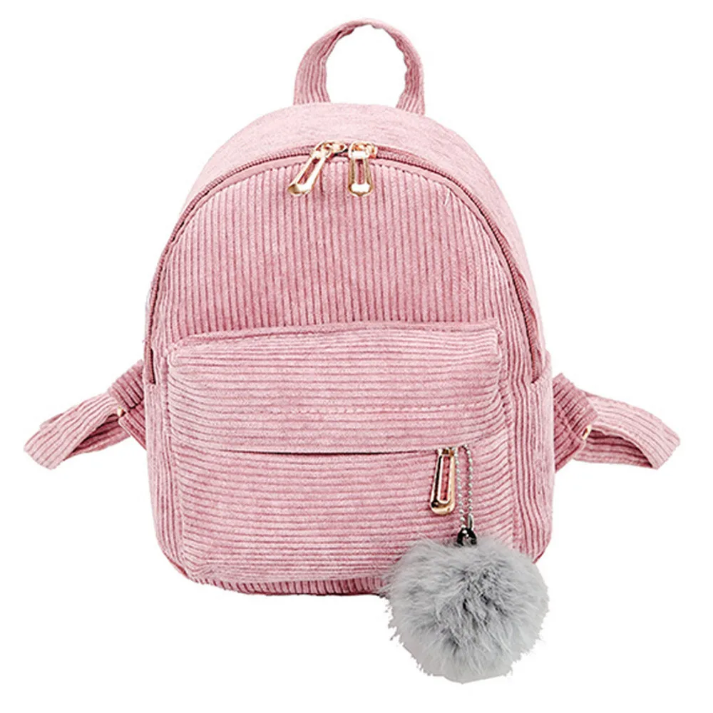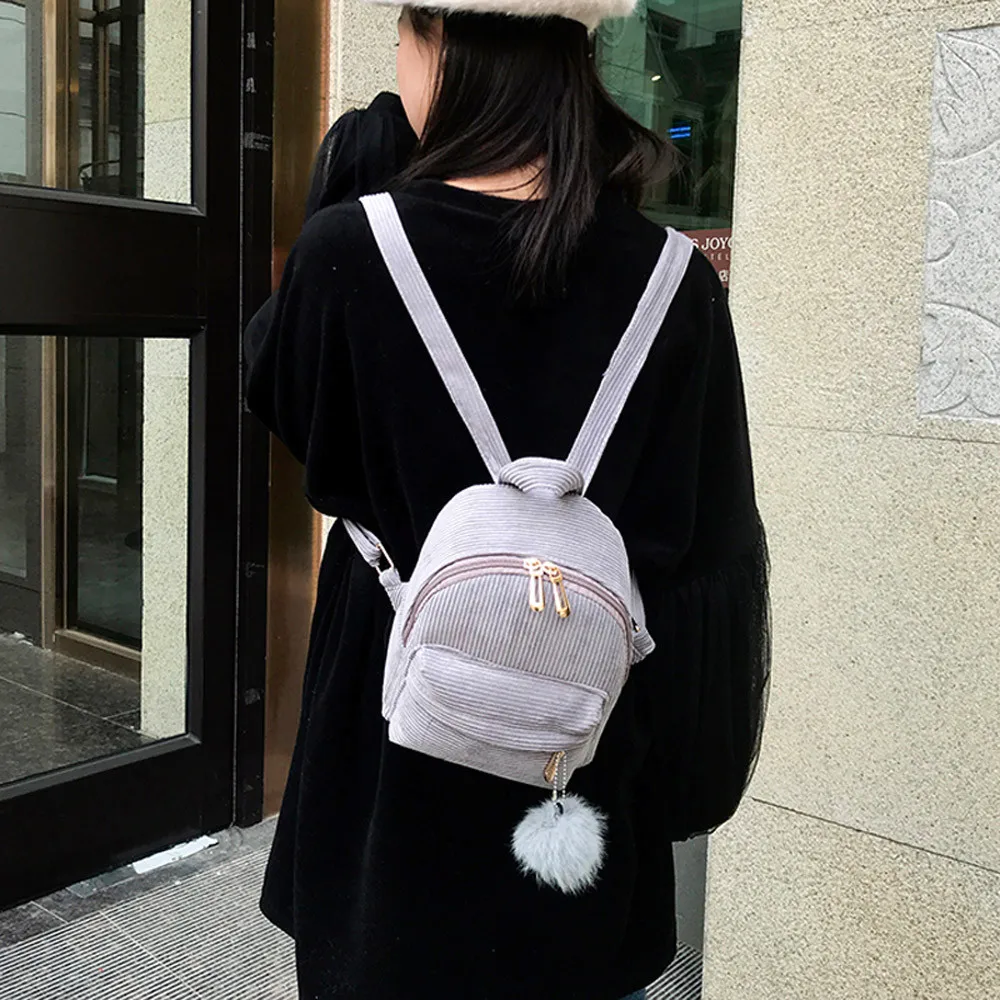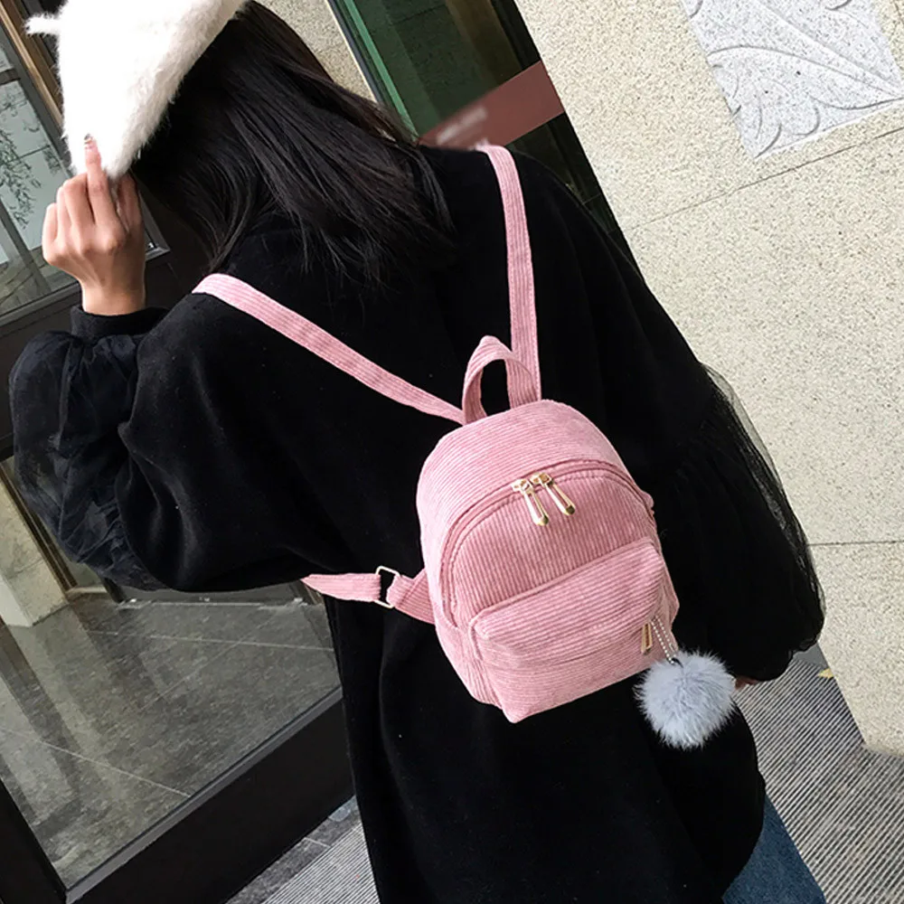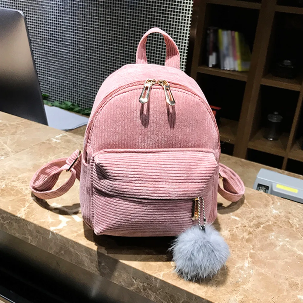 Вельветовая школьная сумка с помпоном для девочек, студенческий рюкзак, сумка на плечо для путешествий
