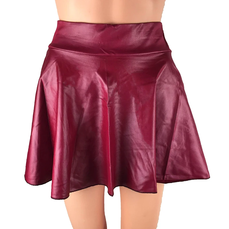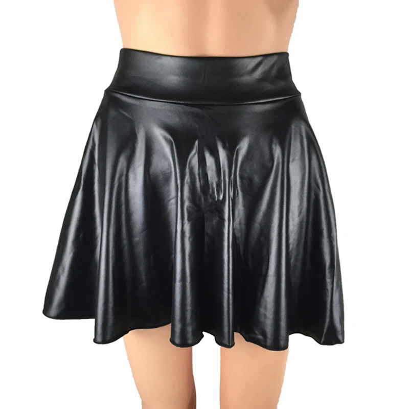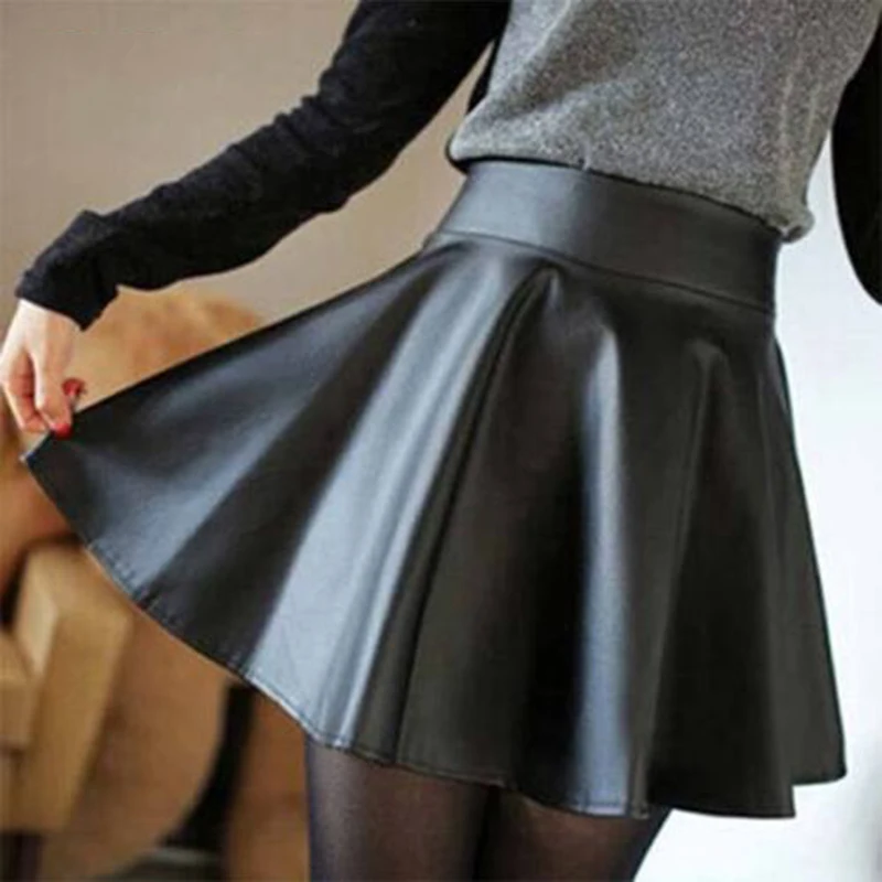 * Описание товара:Женская мода Высокая талия искусственная кожа юбка Сарафан плиссированная юбка 4 цвета