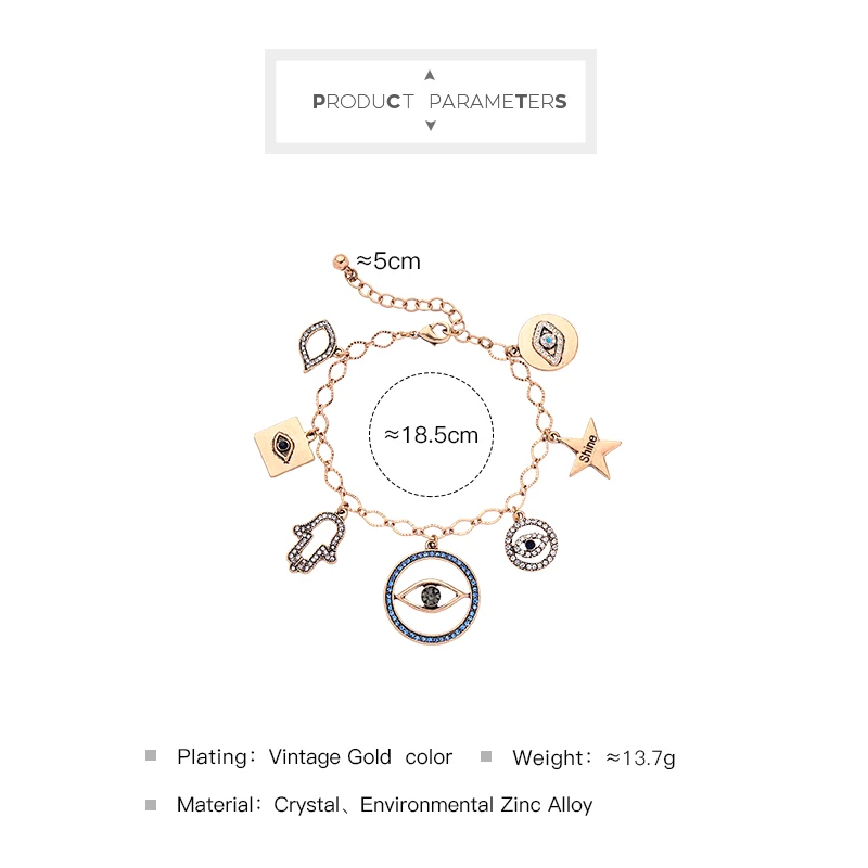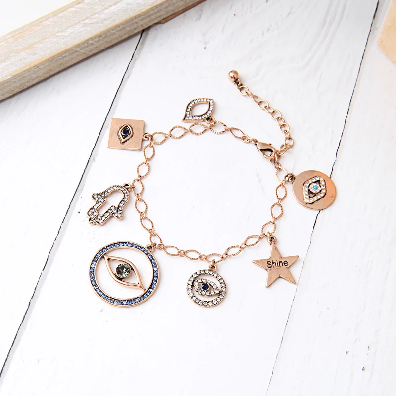 Винтажные золотые Цвет различные прелести ожерелье кристалл «дурной глаз Браслеты Ювелирные наборы для женщин подарок модная обувь; Аксессуары