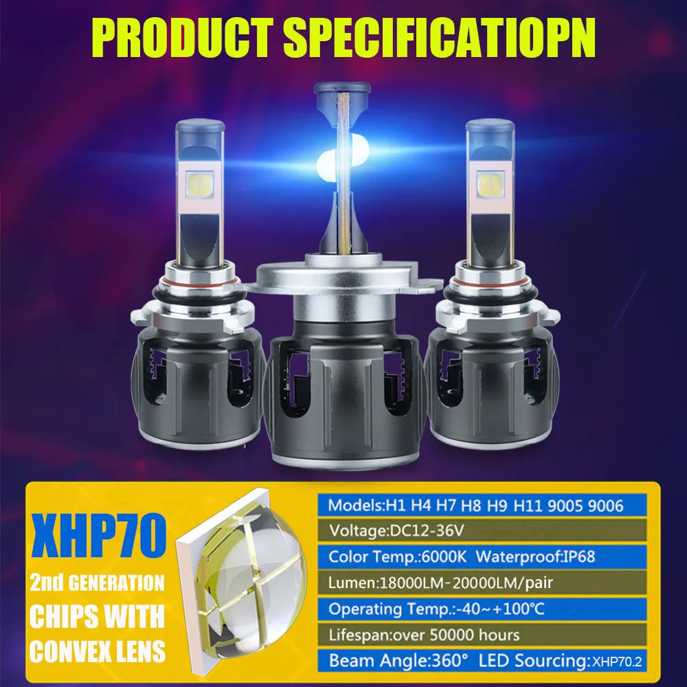 Вдлительную фар автомобиля XHP70.2 H4 H7 H8 H11 9005 9006 9012 авто фары 6000 К лампочка