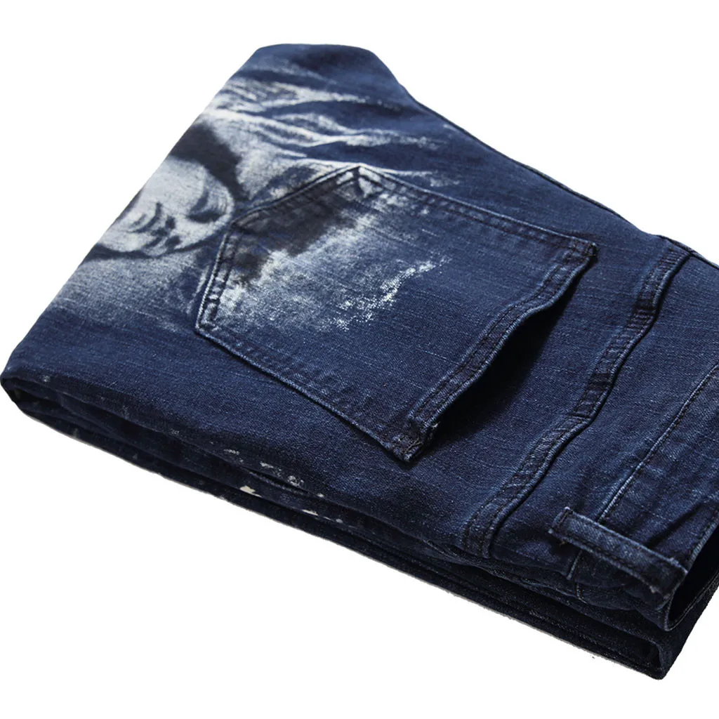 Мужская Новая мода 3D личности тонкий цвет печати стрейч джинсовые брюки