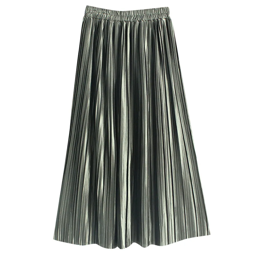 Women's Spring Summer Fashion Casual Solid Color High Waist Pleated A-Line Swing Skirt Stretchy Waistline Jupe Femme 50