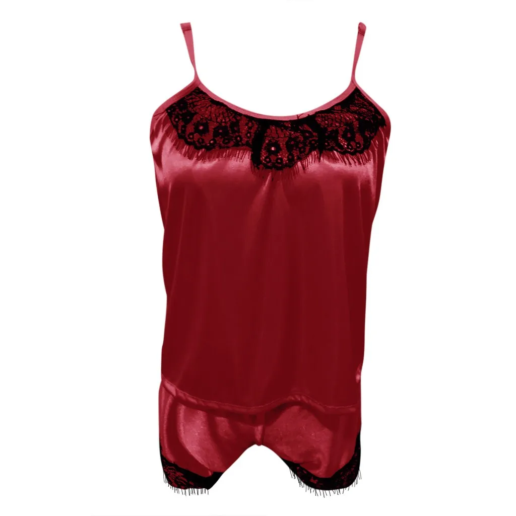 Пикантная летняя кружевная Пижама, одежда для сна для женщин, пижама без рукавов на бретелях-спагетти, Атласный топ на бретелях + шорты, пижамные комплекты, ночная рубашка