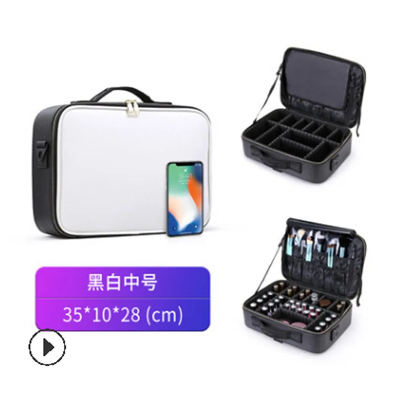 ПрофессиональныйДорожная сумка для макияжа, чехол для поезда, косметический Чехол-органайзер, переносная сумка для художника Профессиональный Чехол для поезда для макияжа, отличный Профессиональный Чехол, идеально подходящий для художника по макияжу или новичка. Отличное качество изготовления и высококачественный материал. Прочная, изготовленная из высококачественной ткани Оксфорд и подкладка из нейлоновой кожи, водонепроницаемая и Ударопрочная. Благодаря двусторонней молнии и широкой ручке, сделать ее более удобной и безопасной. Идеальный размер косметичка Размер: S:26 см * 23 см * 10 см M:35 см * 28 см * 10 см(ДхШхВ). Эта косметичка достаточно места для хранения макияжа, например, помады, блеска для губ, кистей для макияжа, теней для век, палитр для макияжа, кистей для волос, средств по уходу за кожей, лака для ногтей, инструментов для дизайна ногтей и т. д. Многофункциональность не только позволяет хранить вашу косметику, но и ювелирные изделия, электронные аксессуары, камеру, эфирное масло, Туалетные принадлежности, набор для бритья, ценный предмет и так далее. Храните все в чистоте и порядке, поэтому есть несколько отделений и отделений для кистей для макияжа, вы можете держать макияж и кисти для макияжа в чистоте и порядке. Материал: рубашечная тканьТкань+Подкладка-нейлон +Кожаный чехол ПосылкаВ комплекте: 1 косметичка (другие аксессуары на фотографиях не включены в комплект) Советы: Прежде чем купить, пожалуйста, прочитайте нашу таблицу размеров. -- Перед оплатой, пожалуйста, проверьте правильный адрес.