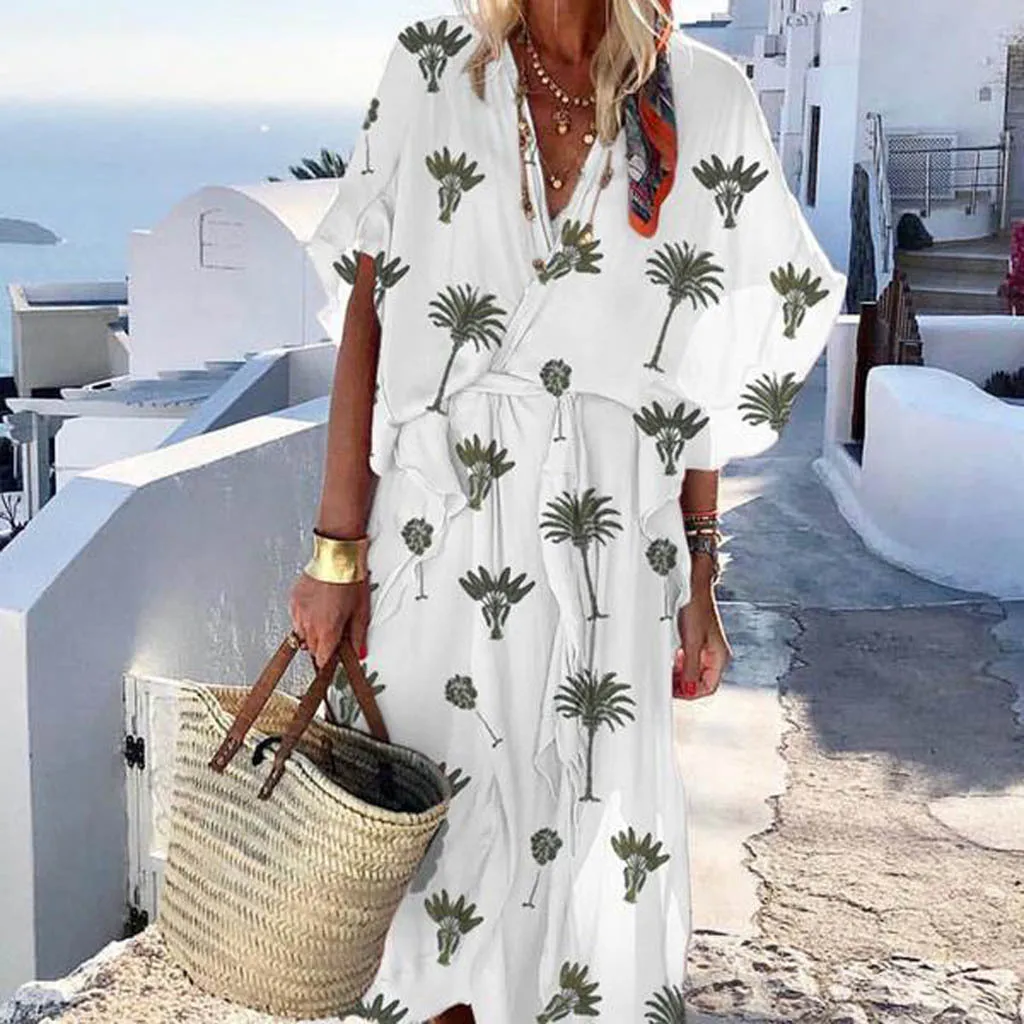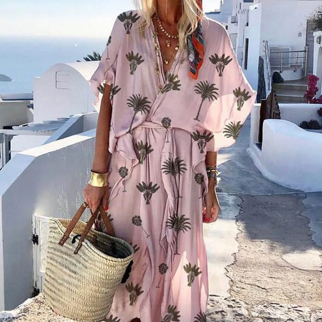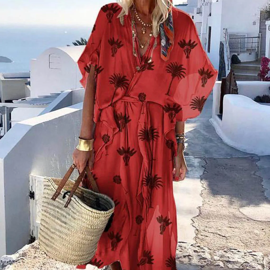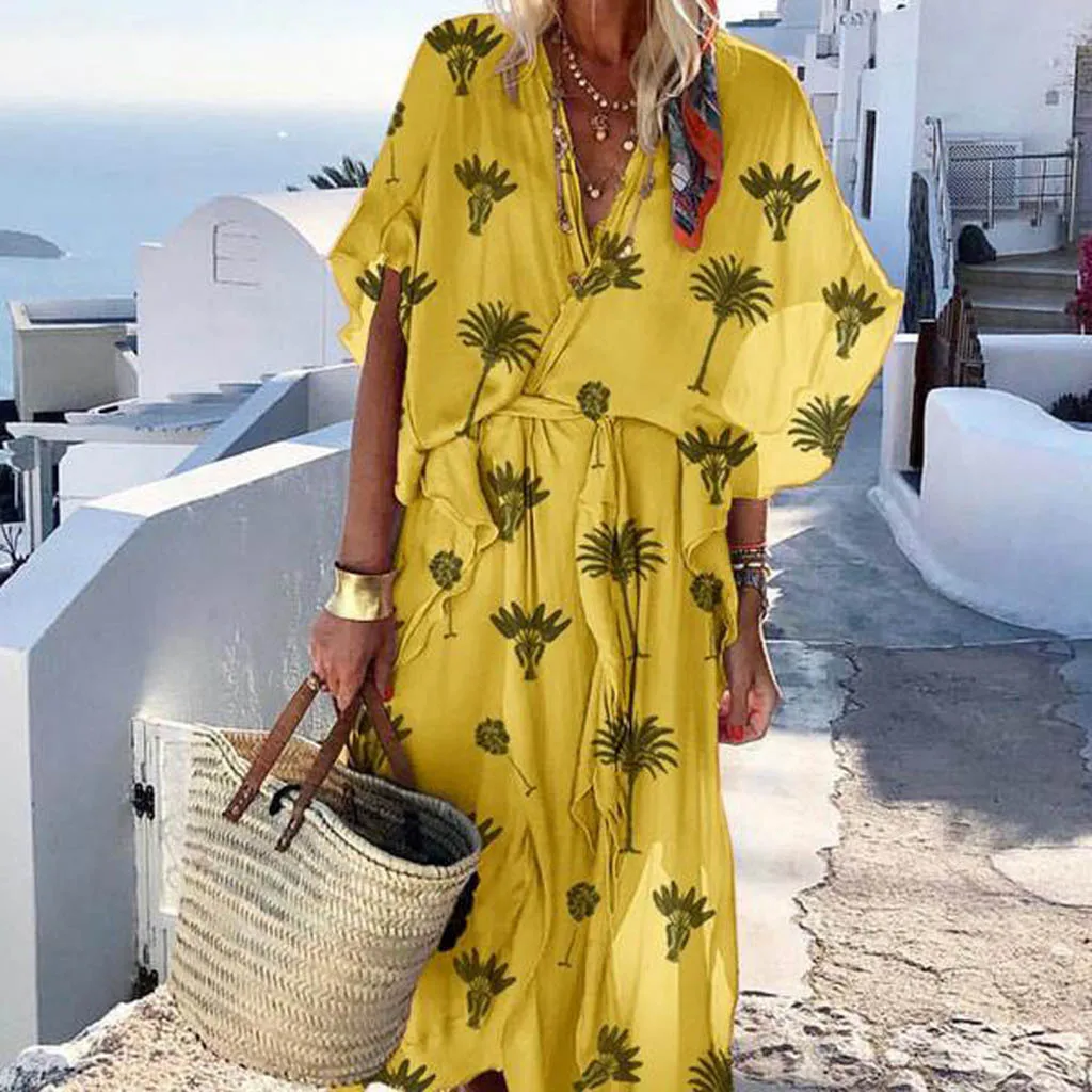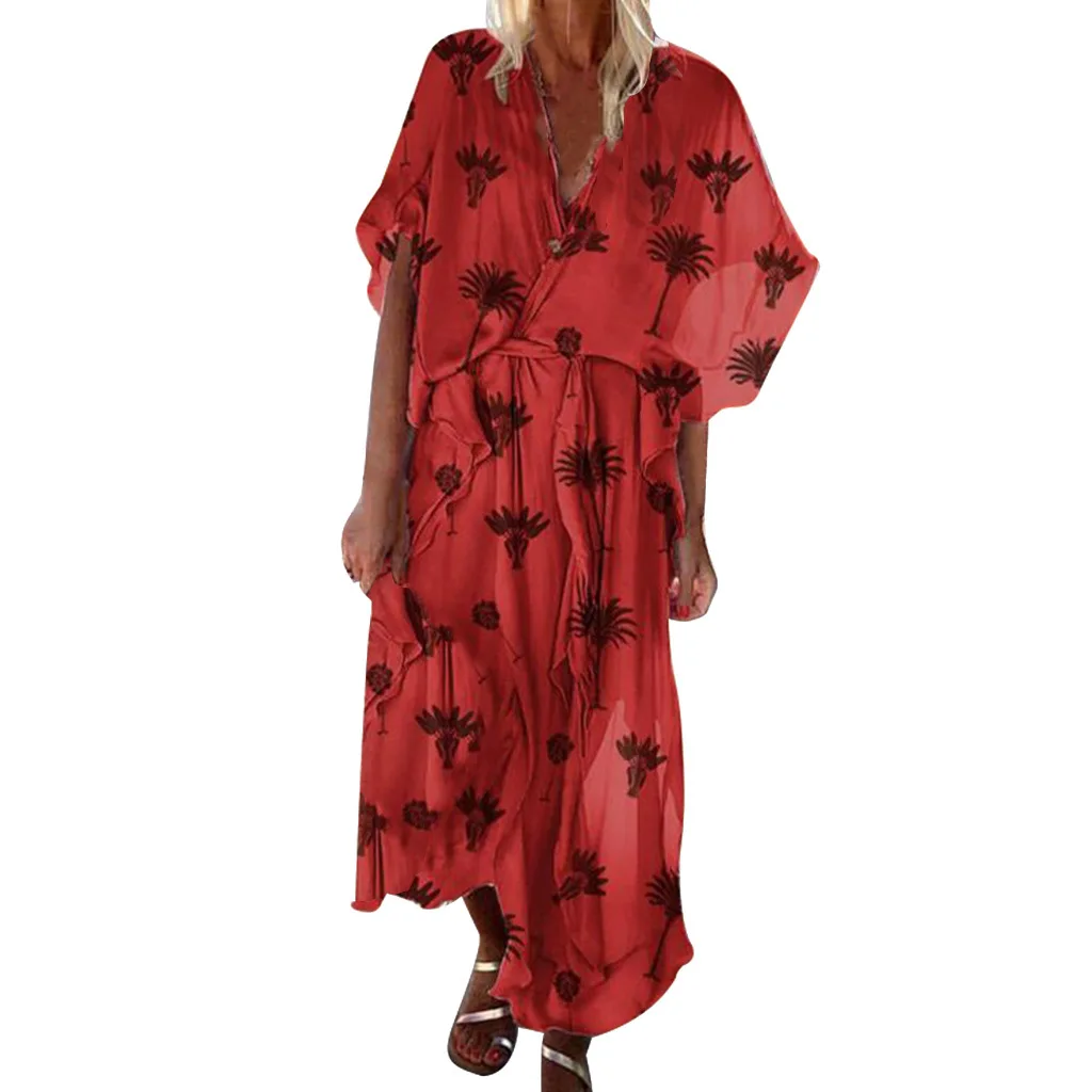 * Описание товара:Женская одежда, летняя повседневная одежда, свободное богемное платье с v-образным вырезом, платье с принтом, пляжные вечерние платья