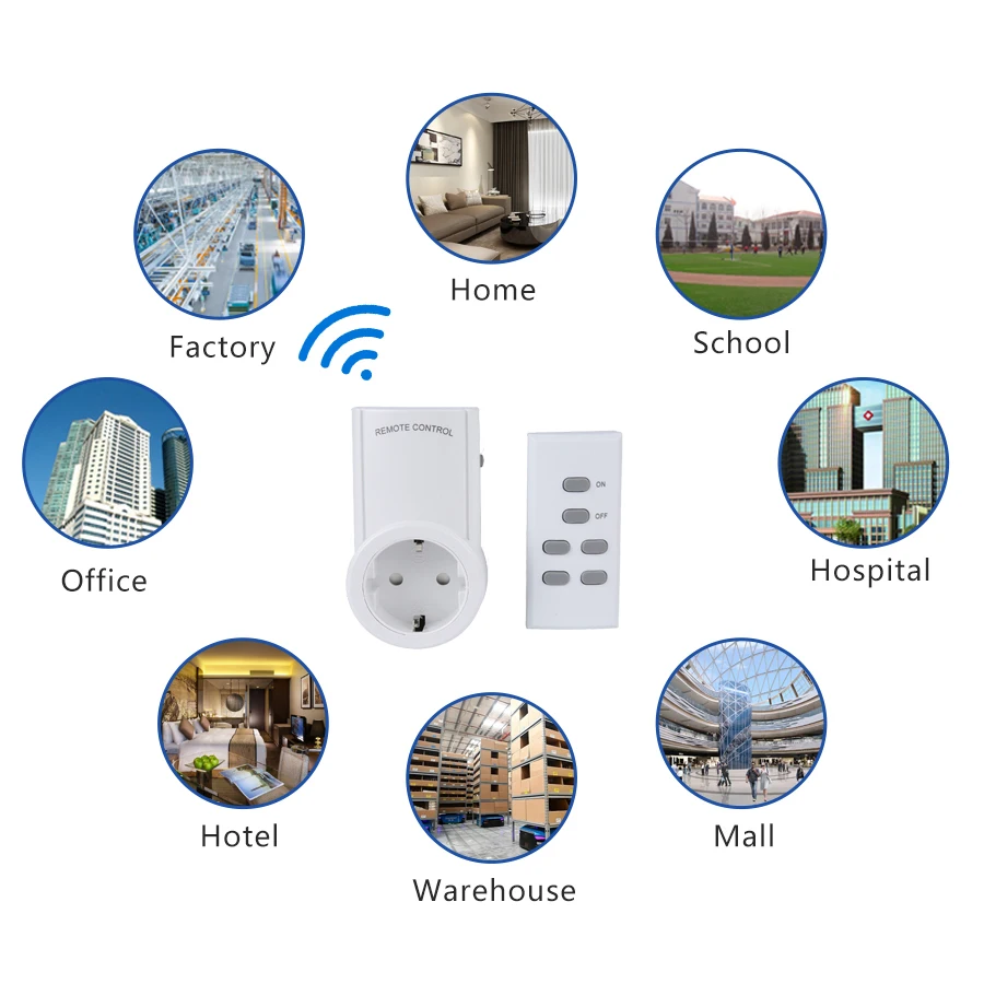 1. Пульт дистанционного управления и выход были предварительно запрограммированы для немедленного использования. Просто подключите и играйте! 2. Сильный радиочастотный сигнал работает через двери и стены, не мешая другой электронике, работающей до 30 м в поле зрения. 3. Используйте пульт дистанционного управления или сами розетки, чтобы включить и выключить ваши приборы, отлично подходит практически с любым внутренним электронным устройством, в том числе Хо использовать приборы для удержания, светильники, праздничные украшения и т. д. 4. Одобрено CE для обеспечения безопасности и качества. 5. Устраняет расточительное питание в режиме ожидания и уменьшает потребление энергии, экономит на ваших электрических счетах и продлевает срок службы продукта 6. Розетки останутся выключенными после отключения питания для экономии энергии и защиты ваших приборов