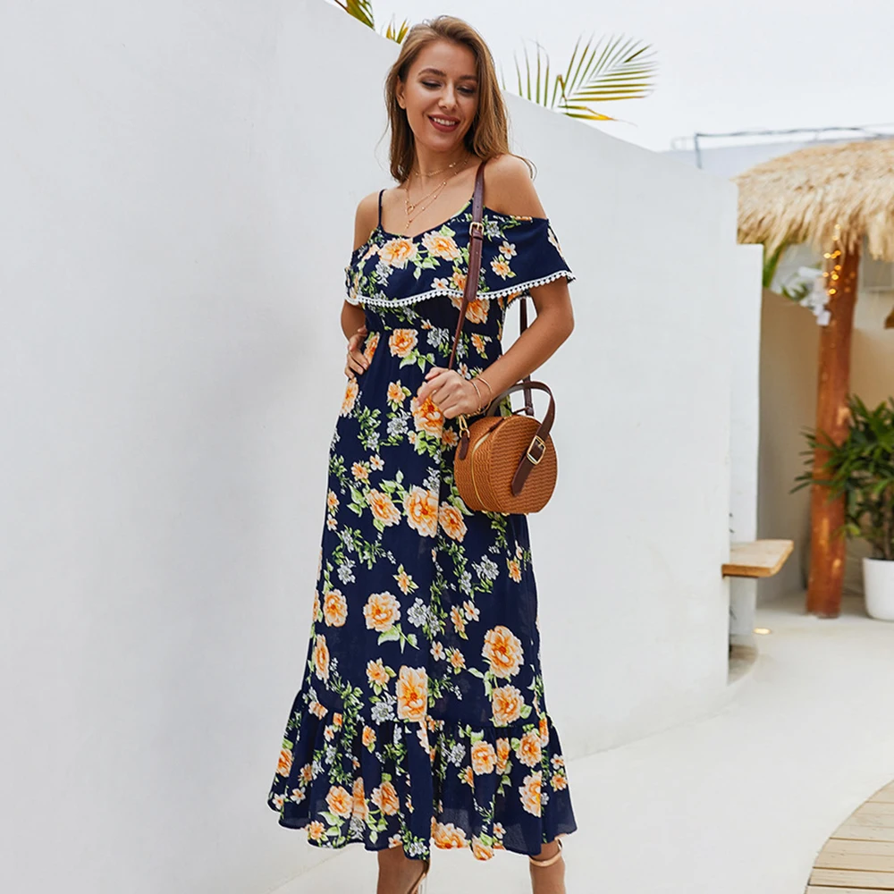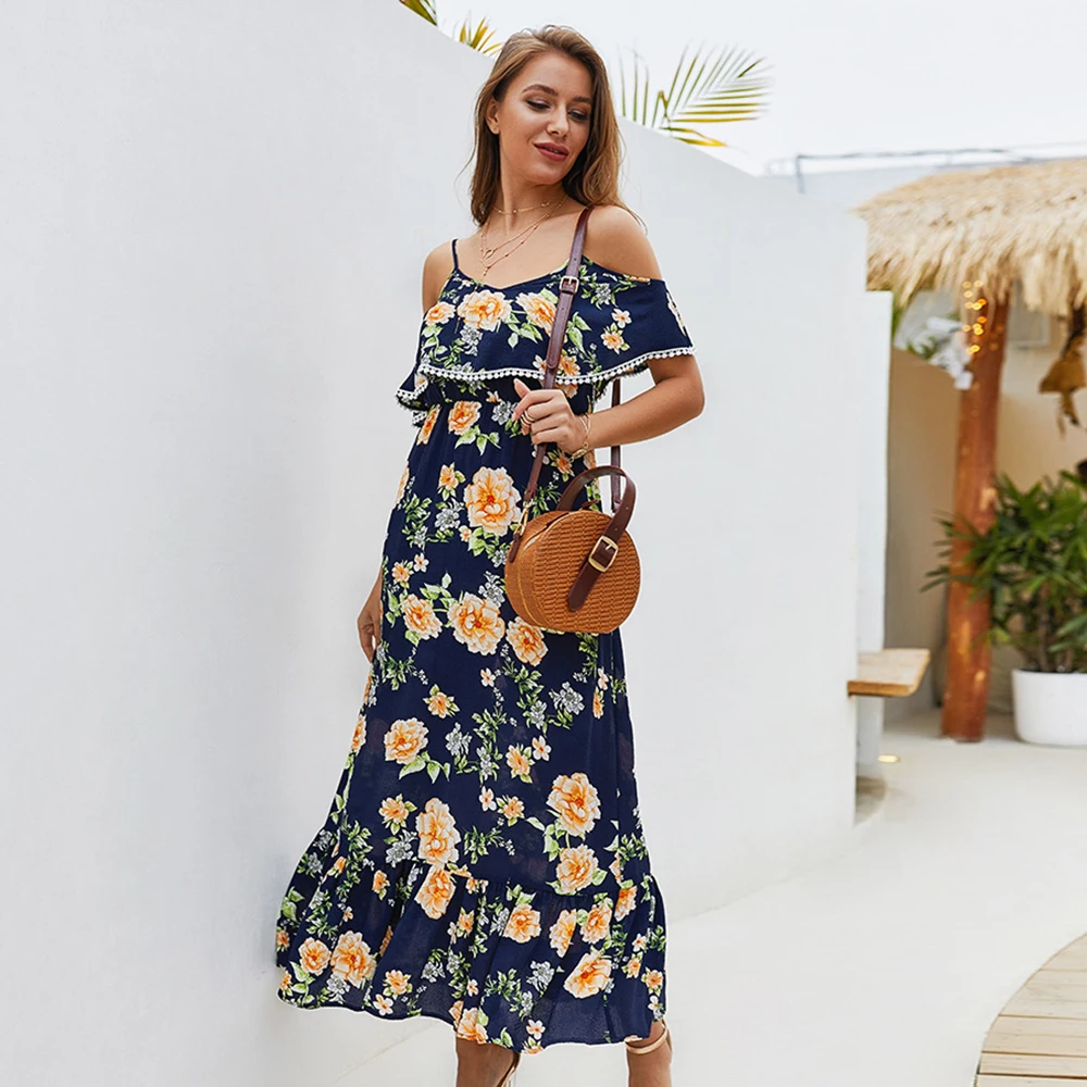 * Описание товара: шифон; гофрированный; слинг; Открытая спина; цветочный принт; длинное платье