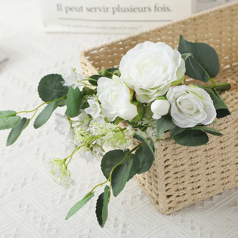 * Цветочная Структура: 1 * ветка камелии (3 головки цветов + 2 почки), 2 * ветви золотых лоз, 1 * babysbreat, 1 * Clove, 1 * Eucalyptus fruit