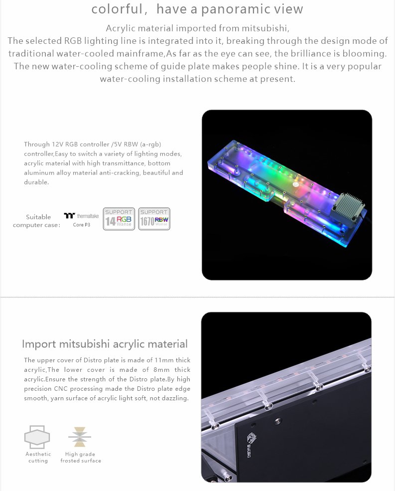 Bykski RGV-TT-P3-P, дистрибутив пластина для Thermaltake Core P3 чехол, цветная (RGB) водного доска резервуар, DIY (сделай сам) комплект водяного охлаждения 12 В/5 V/MB синхронизации