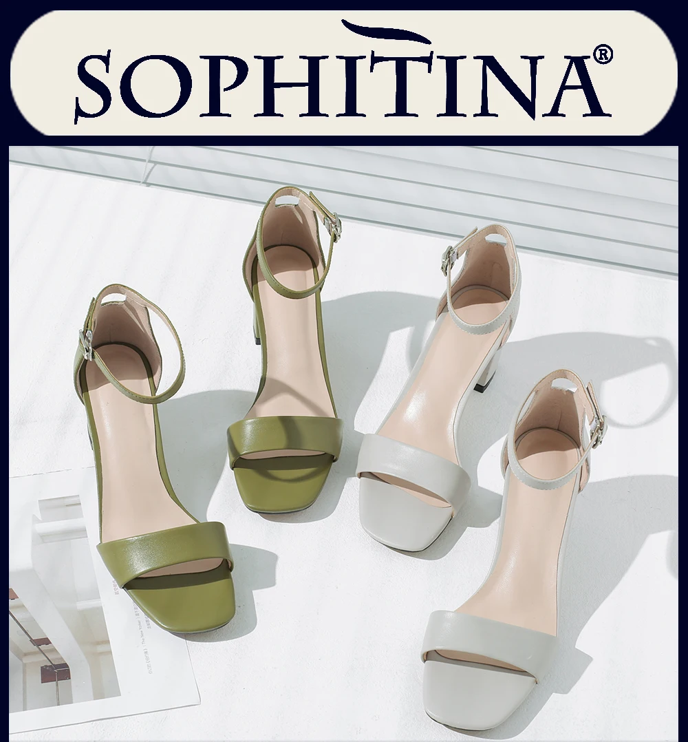 SOPHITINA/Повседневные однотонные женские босоножки из натуральной кожи; Модные туфли на квадратном каблуке с ремешком и пряжкой; Классические женские босоножки на высоком каблуке; SOPHITINA; Sofitina; SO200